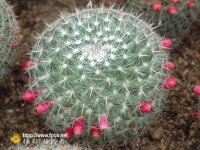 [形态] 多年生肉质草本。植株单生,圆球形至椭圆形,体色鲜绿。球径10~12厘米,具13~21个圆锥形的疣状突起,呈螺旋形排列的棱,疣腋间有15~20根3~4厘米长的白毛,新刺座有白色茸毛,白色刚毛状辐射周刺30~35枚,尖端褐色的中刺2~3枚。春季桃红色小型钟状花围绕球成圈开放,花径1~1.5厘米。