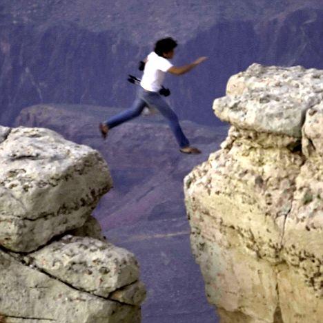 在大峡谷两侧的岩石上跳来跳复去 Both sides of the rock in the Grand Canyon jump to jump on the complex to