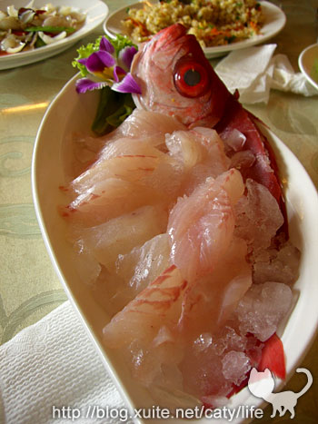 的生前照. 紅木鰱生魚片,下半邊過一下下就拿去煮湯了,
