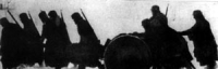 在苏联积雪的路面上,德国士兵费了九牛二虎之力才推动一门大炮。 1941年6月30日,希特勒的强大凶恶而又驯服的德国军队大举入侵苏联,从北极地区到黑海战线长达2000英里。现在纳粹德国和苏维埃俄国已正式开战。这是希特勒完成他为德国人民争夺“生存空间”的尝试。