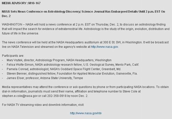 事件: 这回玩真的 美国宇航局要公布天体生物发现
