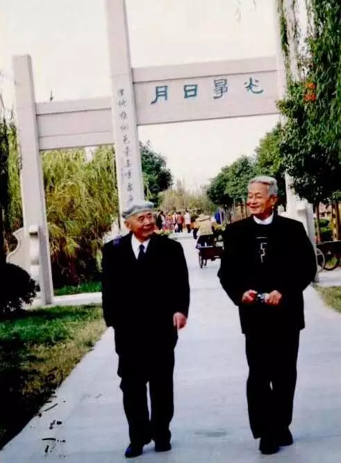 钱谷融先生(左)与徐中玉先生(右)一起漫步