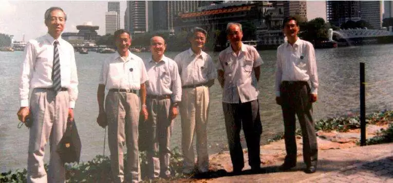 左起:袁行霈、罗宗强、严家炎、徐中玉、金启华、周勋初诸先生于2002年在香港