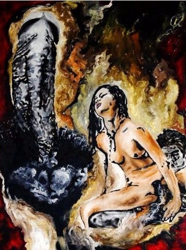 吃过夜饭后,她闩了大门,在屋里剥了一篮玉米。篮满了,她感到肚饿,她想炒些玉米。进灶房,生火,望着火口里噼啪作响的红旺旺的烈火,使她一下子想到了男人和女人的做事,原来竟和这烧火是一模样儿景况,一模样儿做法。