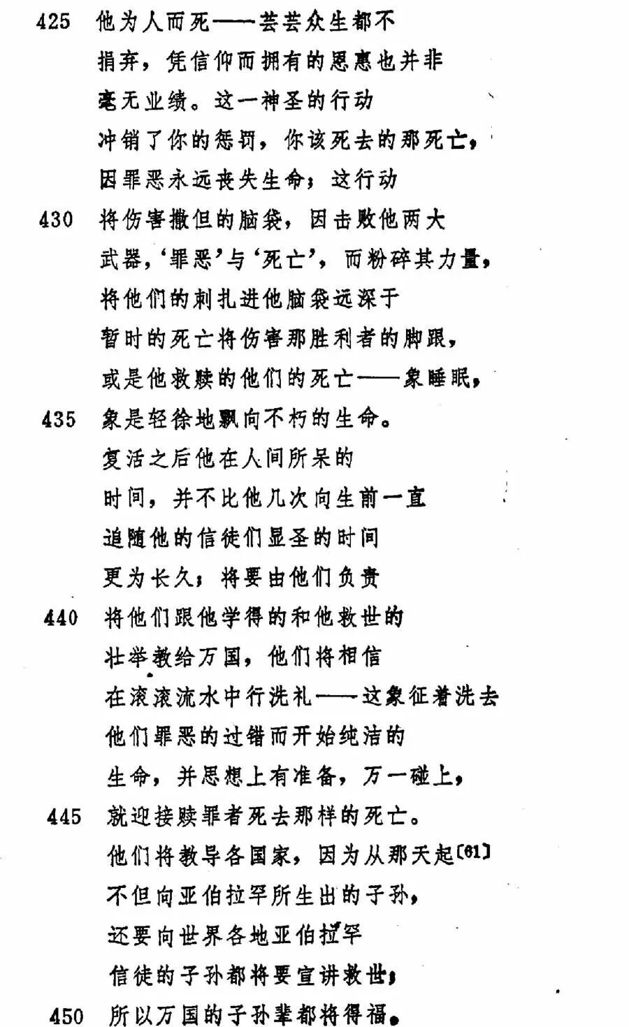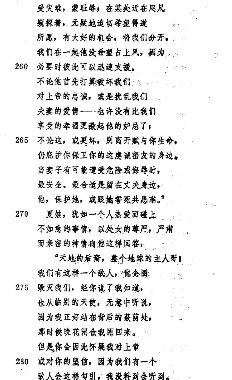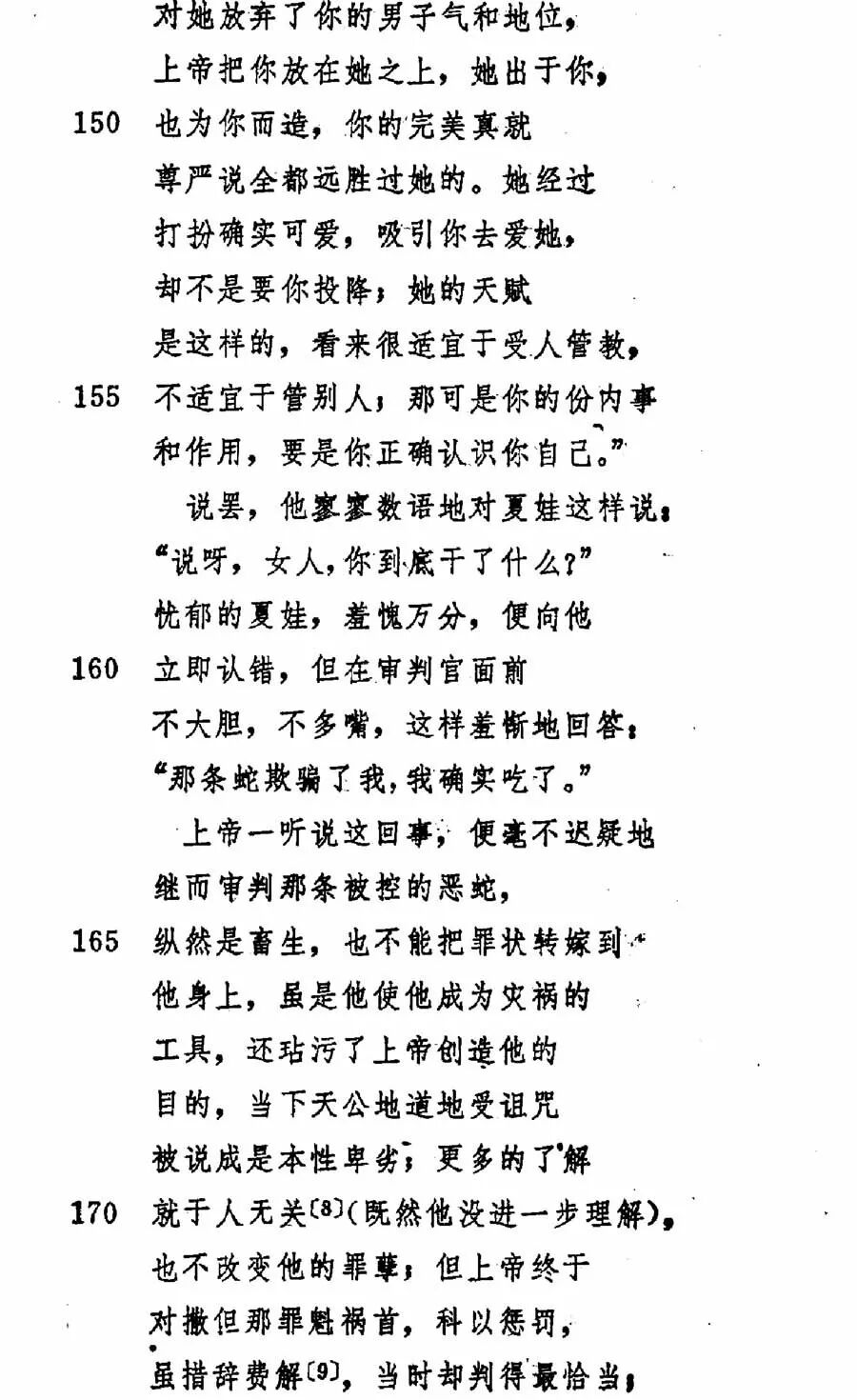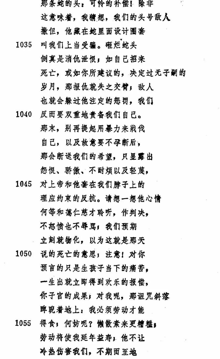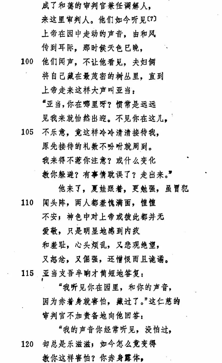 题材选取上,弥尔顿《失乐园》借人类始祖亚当、夏娃受撤旦引诱堕落而被逐出乐园的故事,揭示基督教“原罪”观念,提倡人类应以现实的态度勇于承担尘世生活的重担,以赎罪拯救自身。《复乐园》用耶稣战胜撤旦种种诱惑而恢复乐园的故事,说明人类如能完善自身品格,定可战胜种种磨难,得到拯救。《斗士参孙》借悲剧人物参孙中计、被囚、失明、饱受凌辱、不惜生命报仇雪耻的经历,申诉了弥尔顿自己的政治遭遇和理想信念,颂扬了为高尚事业而斗争的坚韧不拔的品格和不惜牺牲自己的救赎精神。