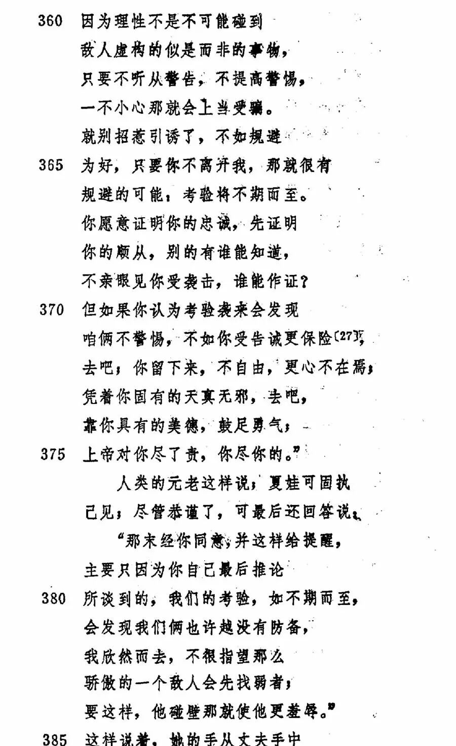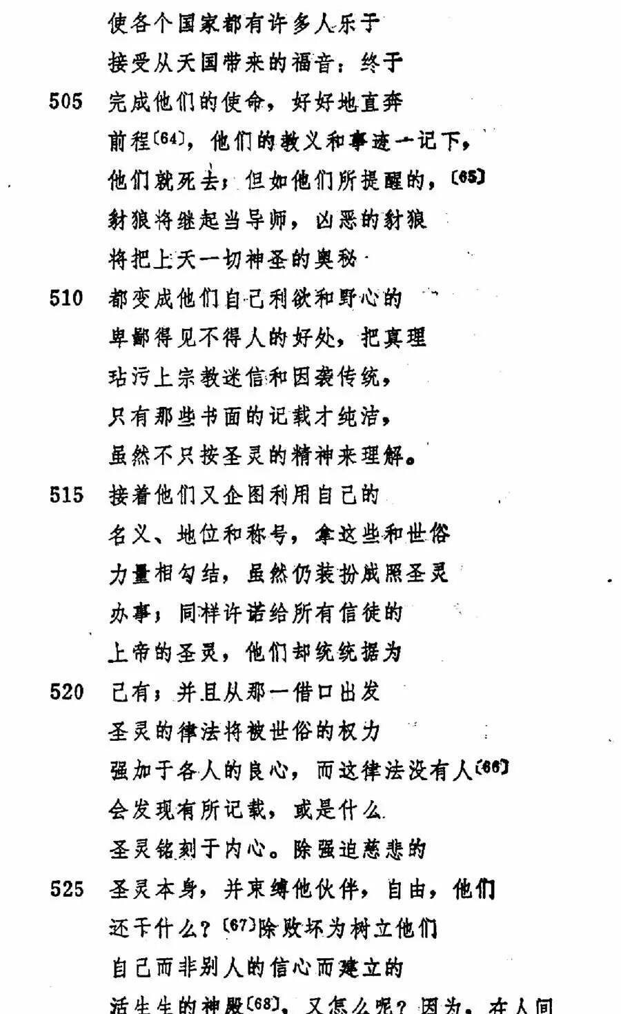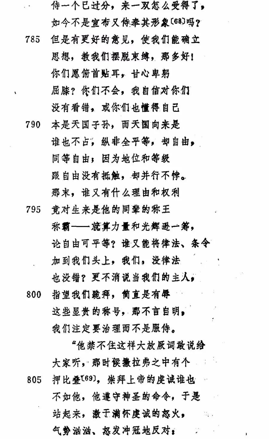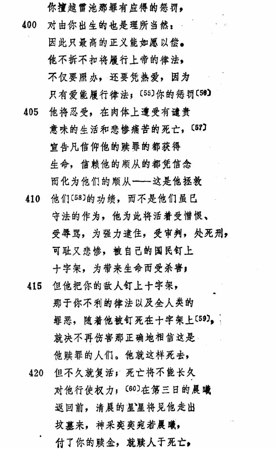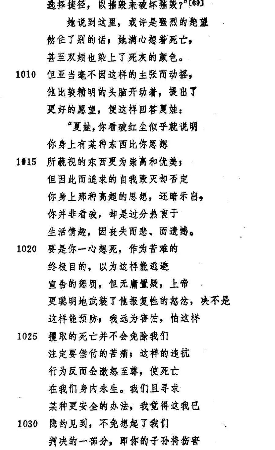 题材选取上,弥尔顿《失乐园》借人类始祖亚当、夏娃受撤旦引诱堕落而被逐出乐园的故事,揭示基督教“原罪”观念,提倡人类应以现实的态度勇于承担尘世生活的重担,以赎罪拯救自身。《复乐园》用耶稣战胜撤旦种种诱惑而恢复乐园的故事,说明人类如能完善自身品格,定可战胜种种磨难,得到拯救。《斗士参孙》借悲剧人物参孙中计、被囚、失明、饱受凌辱、不惜生命报仇雪耻的经历,申诉了弥尔顿自己的政治遭遇和理想信念,颂扬了为高尚事业而斗争的坚韧不拔的品格和不惜牺牲自己的救赎精神。