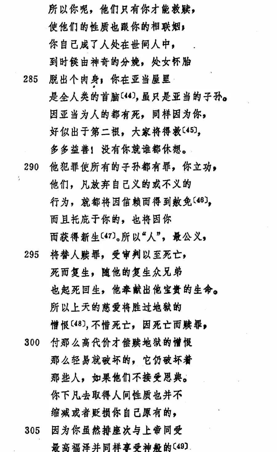 人物形象上,弥尔顿出于表达救赎这一崇高思想的需要,选用宏大的事件作为题材,采用宏伟的长诗作为体裁,以引经据典、气势恢宏的风格,创造了文学史上经典的人物形象:耶酥、参孙、亚当和夏娃等。人物形象的塑造上都带有诗人救赎思想的烙印。亚当和夏娃是人类的始祖,他们身上有人类普遍的品质,是救赎的条件;耶酥是诗人理想人格的化身,美德是救赎的基础;参孙是救赎之路上的典型形象,堕落与再生给人类带来救赎的希望。