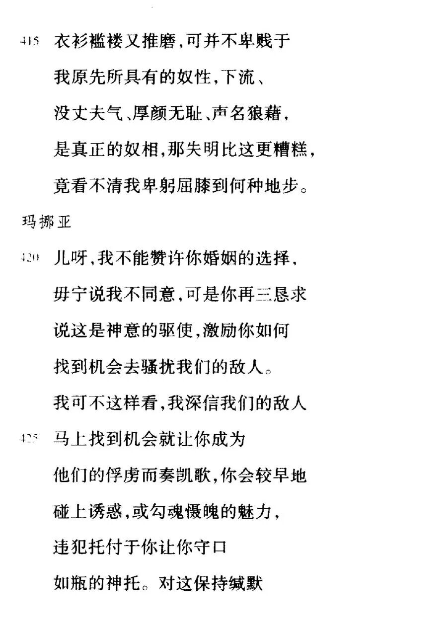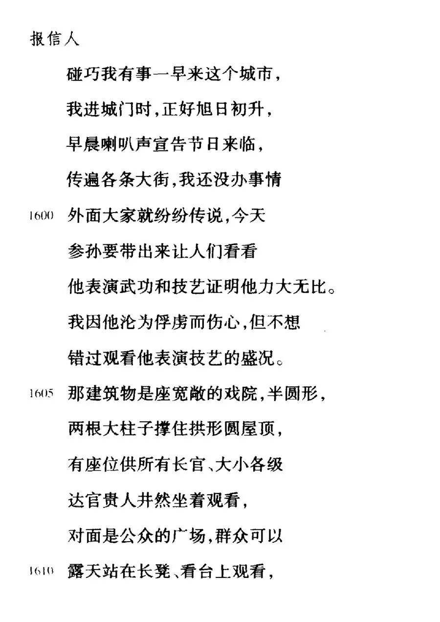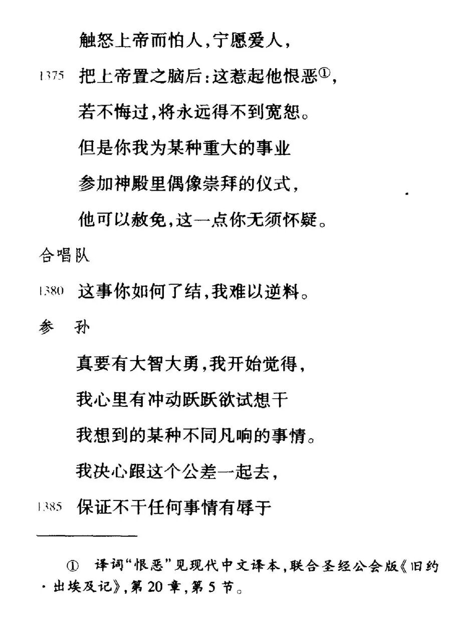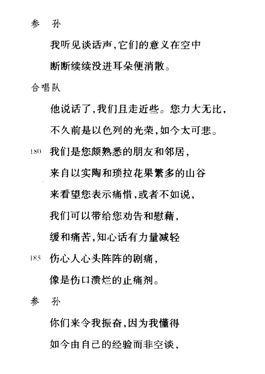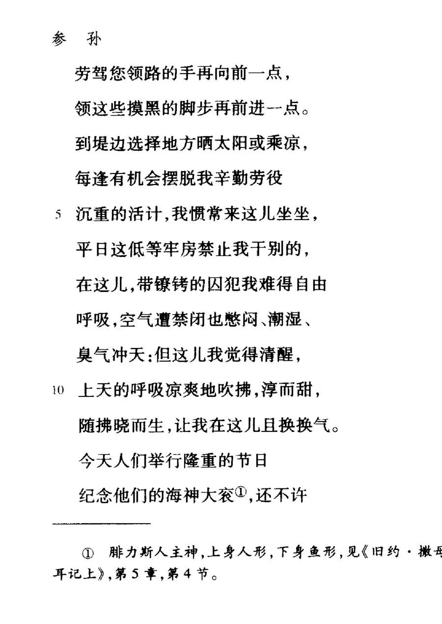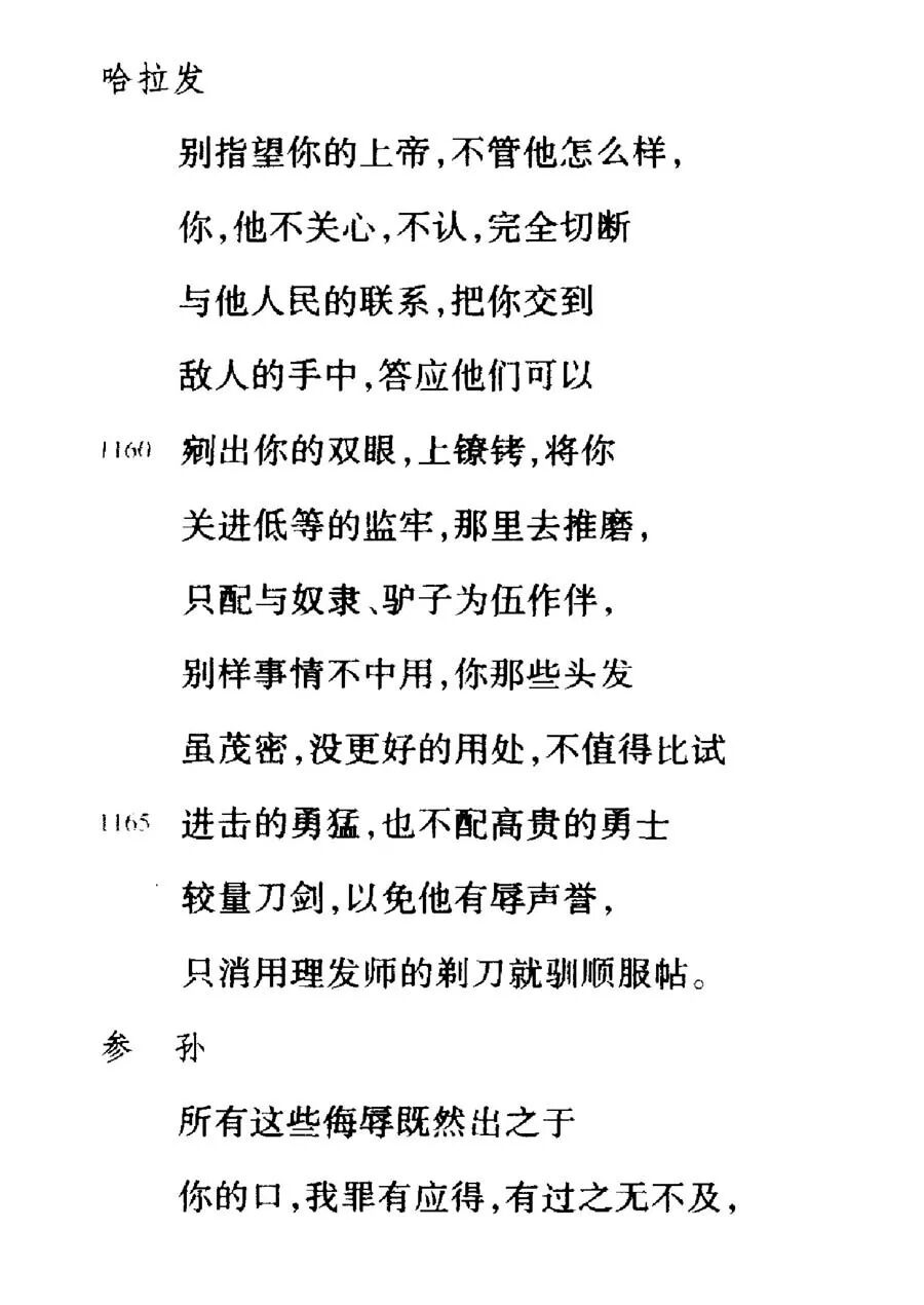斗士参孙》是英国文学中最出色的希腊式古典悲剧。具有超人勇力的参孙遭妻子出卖失去了神力,且双目失明,身陷囹圄,但他仍力抗强暴,终与敌人同归于尽。一身正气,勇于牺牲的参孙的形象,正是作者悲壮经历的写照。晚年的弥尔顿虽目盲却依然壮怀激烈,他将炽热的情感倾注笔端,使这部无韵诗剧更具有庄严灿烂之美。本书译者金发燊为我国资深翻译家,对弥氏著作有独到的见解。译文信、达、雅三者咸备。诗的前半部分,不断地嗟叹命运于他的残酷。在诗的开篇,就是他的朋友们反复比较参孙被俘前后的落差之大。在被俘前,参孙能够用一块驴腮骨击杀一千人,还能够徒手撕碎一头狮子,他拥有上帝赐予的神力;但是现在却脚戴镣铐,双眼被剜,在牢里做着最卑下的苦力。而在参孙自己看来,他从过去一个伟大的英雄,落到这步田地,更比一般奴隶而不如。他哀叹道,他被赋予了伟大的力量,但却没有同时被赋予相匹配的智慧。这才使得他虽然拥有无限勇力,但却最终被从心灵的缺口击溃,导致了现在的惨境。但是,他也承认,一切都是咎由自取,上帝并没有过错。是因为他贪恋美色,自失分寸,把上帝赐予的秘密告诉了仇敌的女儿。可以说,被俘是他的认识的转折点。他能够认识到过错在于自己,而非上帝,也是他把握上帝的道的开端。在被俘之前,他如此的骄傲,以至于认为所有的荣誉都归于自己。他被巨大的荣誉蒙蔽了双眼,变成了一个轻率、盲目、鲁莽的人。在他被锁进监牢里之后,他才真正明白,自己之所以力大无穷,创造了伟大功绩,全是由于上帝的赐予,因此,所有的伟大的功绩都只能被看作是上帝的荣光。