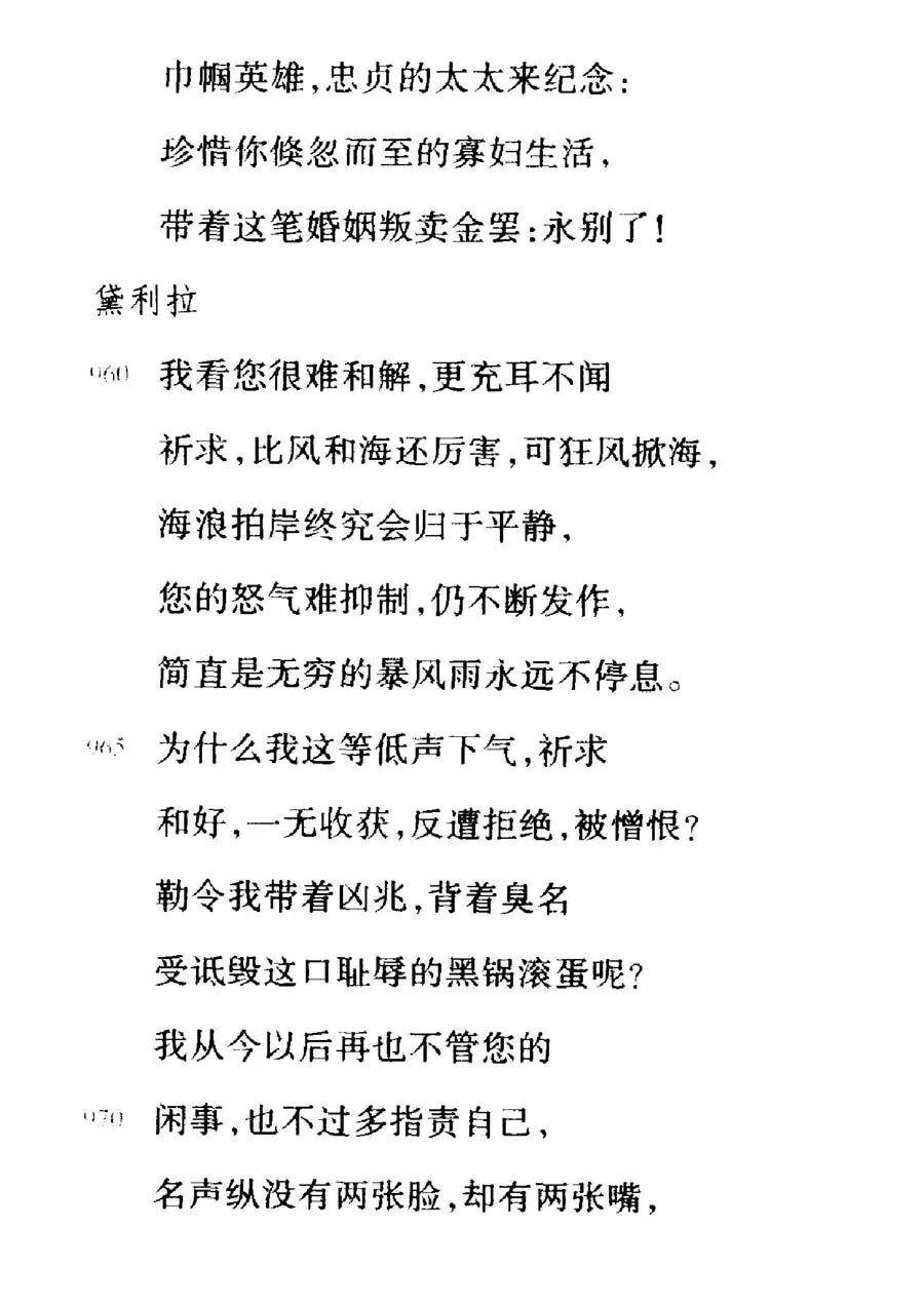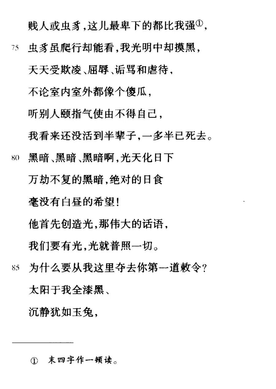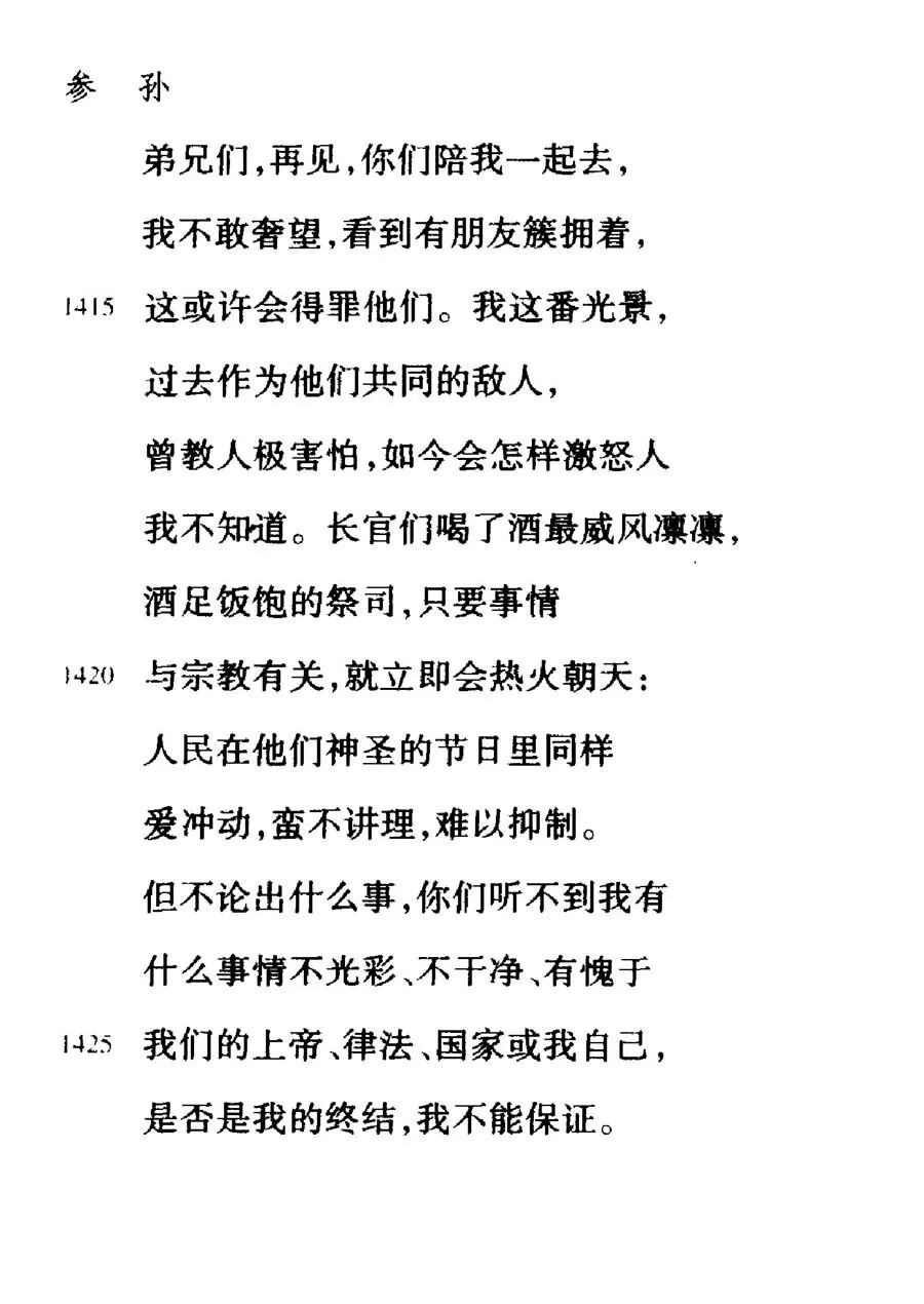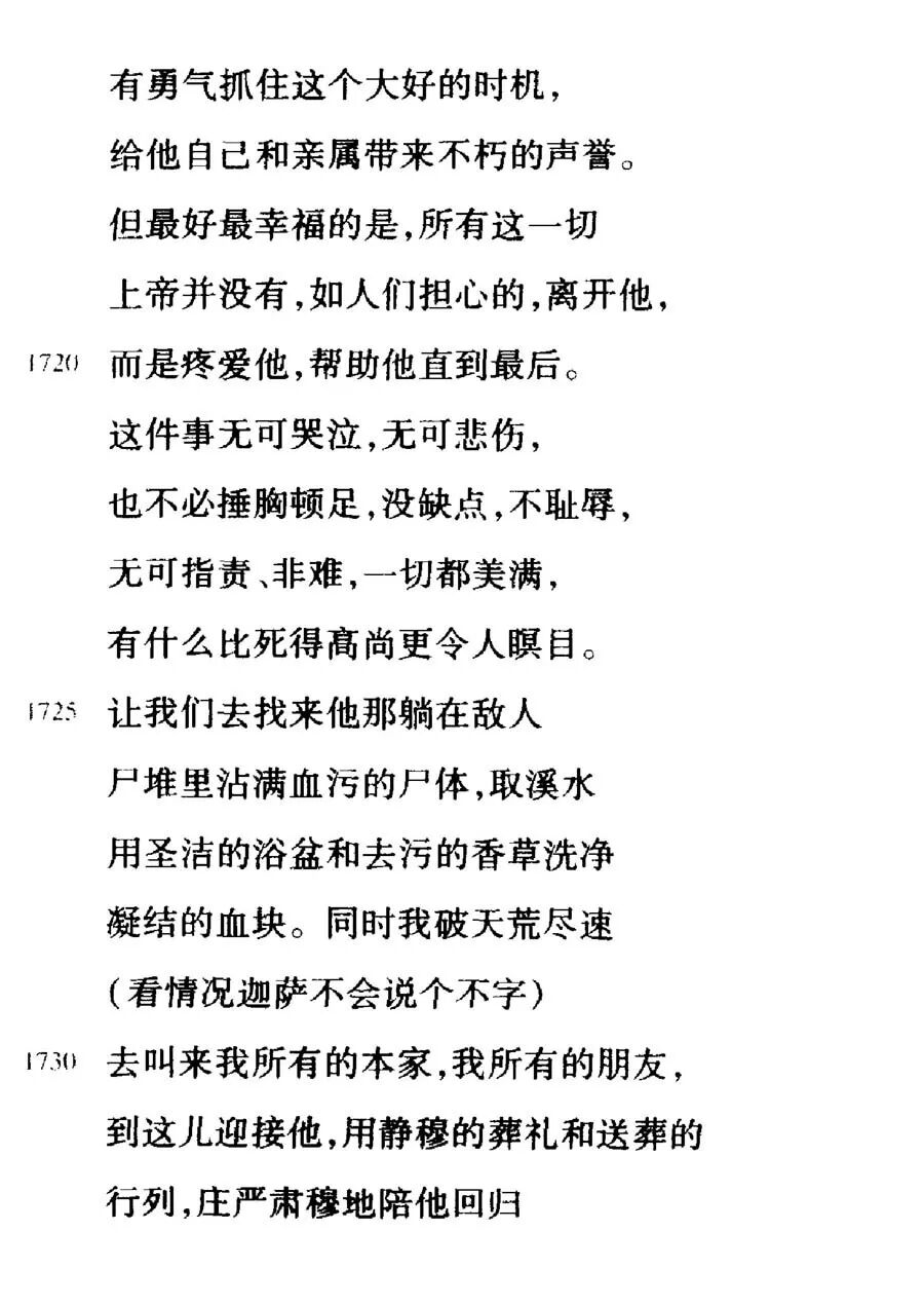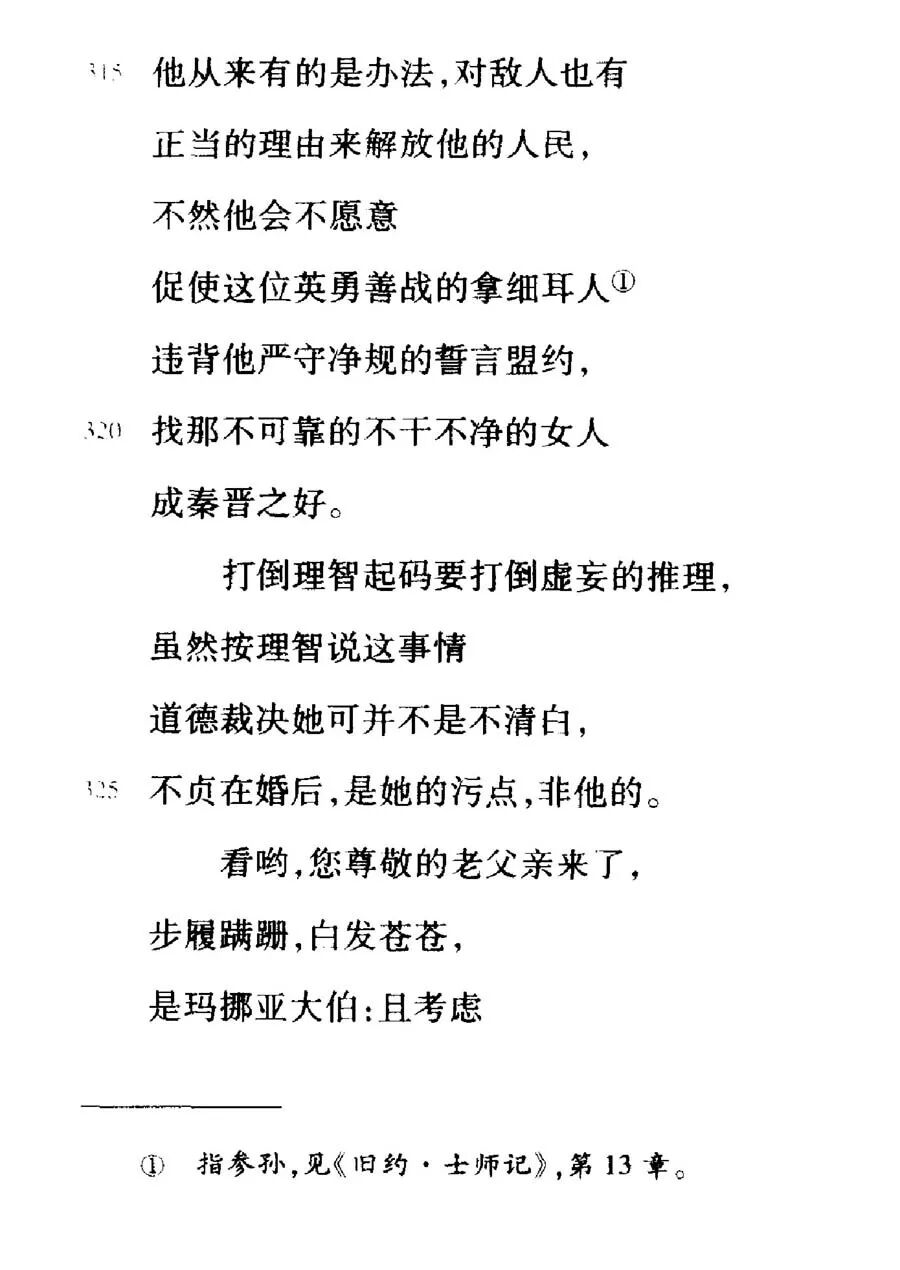 斗士参孙》是英国文学中最出色的希腊式古典悲剧。具有超人勇力的参孙遭妻子出卖失去了神力,且双目失明,身陷囹圄,但他仍力抗强暴,终与敌人同归于尽。一身正气,勇于牺牲的参孙的形象,正是作者悲壮经历的写照。晚年的弥尔顿虽目盲却依然壮怀激烈,他将炽热的情感倾注笔端,使这部无韵诗剧更具有庄严灿烂之美。本书译者金发燊为我国资深翻译家,对弥氏著作有独到的见解。译文信、达、雅三者咸备。诗的前半部分,不断地嗟叹命运于他的残酷。在诗的开篇,就是他的朋友们反复比较参孙被俘前后的落差之大。在被俘前,参孙能够用一块驴腮骨击杀一千人,还能够徒手撕碎一头狮子,他拥有上帝赐予的神力;但是现在却脚戴镣铐,双眼被剜,在牢里做着最卑下的苦力。而在参孙自己看来,他从过去一个伟大的英雄,落到这步田地,更比一般奴隶而不如。他哀叹道,他被赋予了伟大的力量,但却没有同时被赋予相匹配的智慧。这才使得他虽然拥有无限勇力,但却最终被从心灵的缺口击溃,导致了现在的惨境。但是,他也承认,一切都是咎由自取,上帝并没有过错。是因为他贪恋美色,自失分寸,把上帝赐予的秘密告诉了仇敌的女儿。可以说,被俘是他的认识的转折点。他能够认识到过错在于自己,而非上帝,也是他把握上帝的道的开端。在被俘之前,他如此的骄傲,以至于认为所有的荣誉都归于自己。他被巨大的荣誉蒙蔽了双眼,变成了一个轻率、盲目、鲁莽的人。在他被锁进监牢里之后,他才真正明白,自己之所以力大无穷,创造了伟大功绩,全是由于上帝的赐予,因此,所有的伟大的功绩都只能被看作是上帝的荣光。