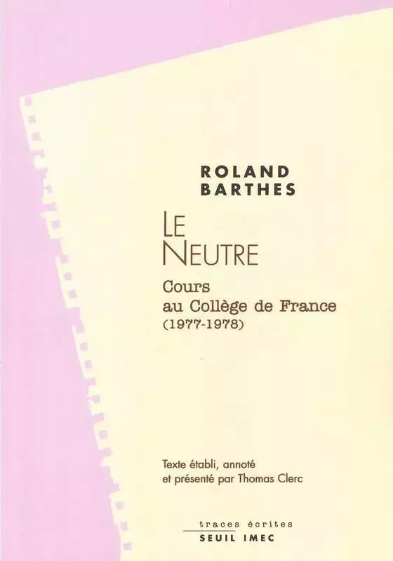 [33][34][35][36][37][40][42][46][47][48][49][50] Roland Barthes, Le Neutre. Cours au collège de France (1977-1978), annoté et présenté par Thomas Clerc, Paris: Seuil, 2002, p. 29, p. 30, p. 31, p. 3, p. 131, p. 107, p. 106, p. 222, p. 223, p. 25, p. 232, p. 233.