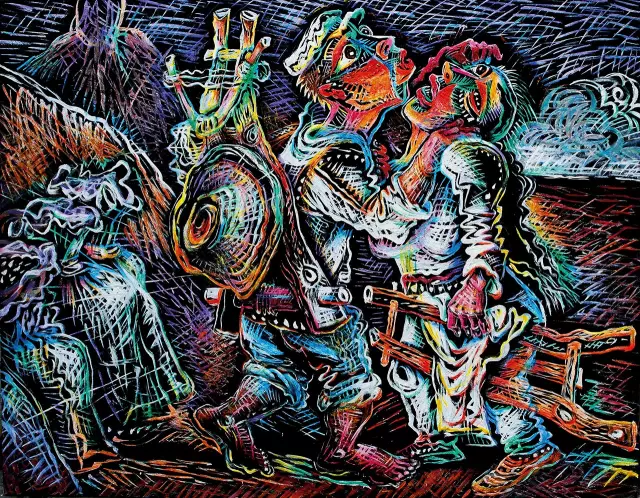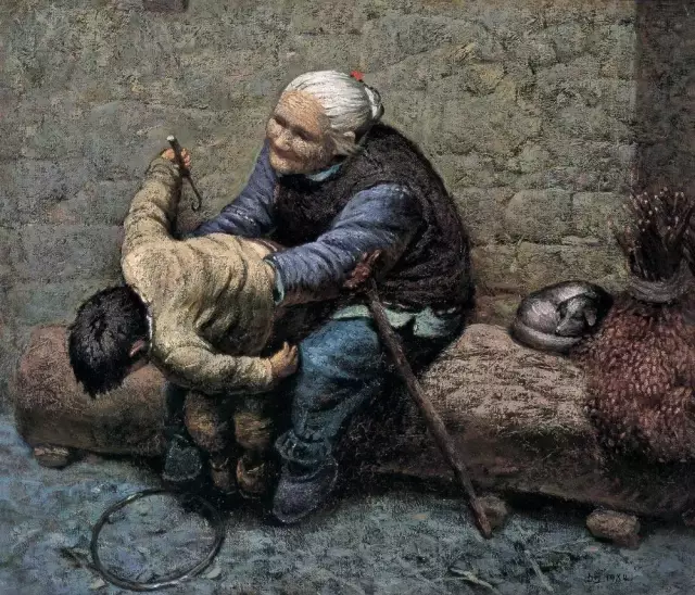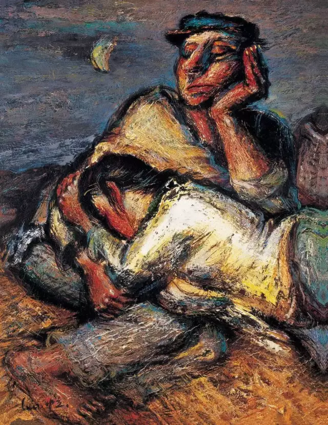 过去罗中立公开展示的作品大都是严谨的“构图”作品,画面组构严密,形象简练单纯,表现手法纯熟洗练,充满着强劲的情感穿透力,《父亲》一作即是这类作品的典型代表;这些作品让他建立起在画坛上的地位,这是我们一般所熟悉的罗中立—— 一位深刻严谨的画家。