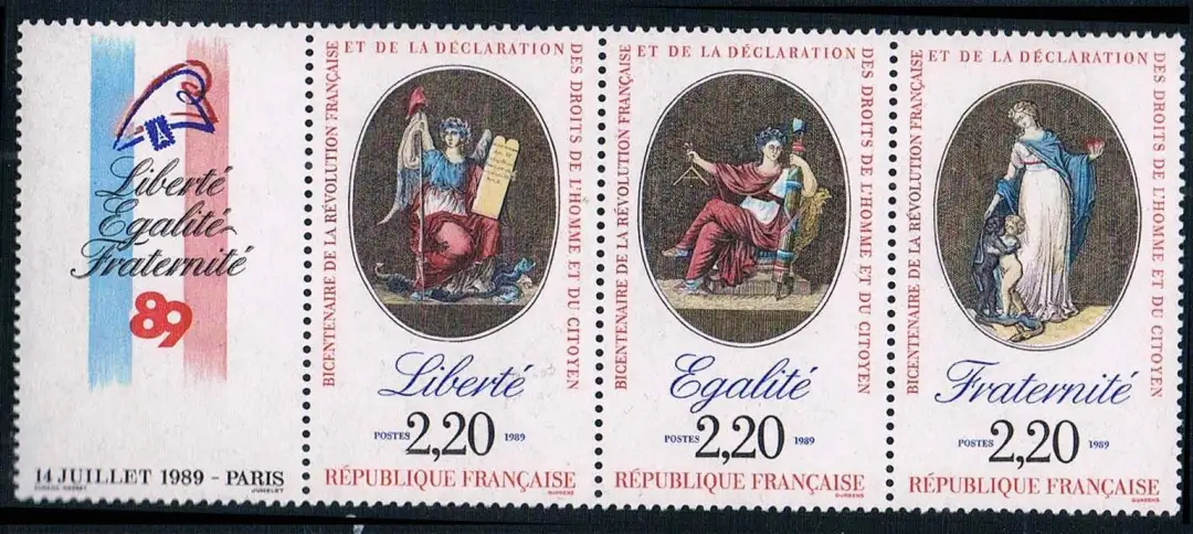 ▲“自由”“平等”“博爱”法国大革命纪念邮票