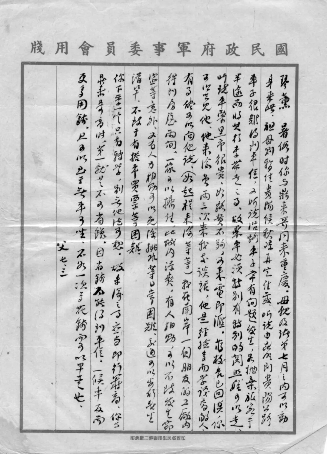 外公陶希圣写给母亲的信,里面提到蒋梦麟校长经验多学识高,也提到母亲从西南联大转学重庆等等