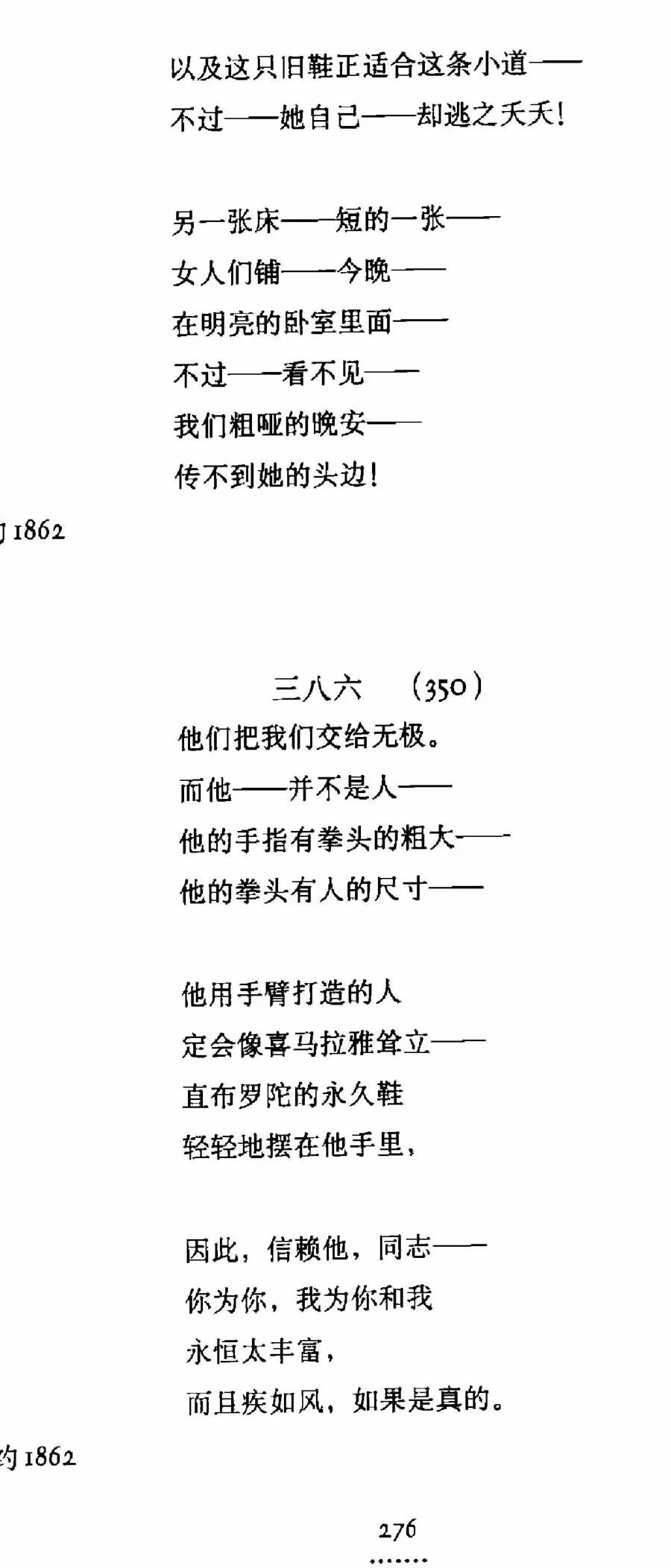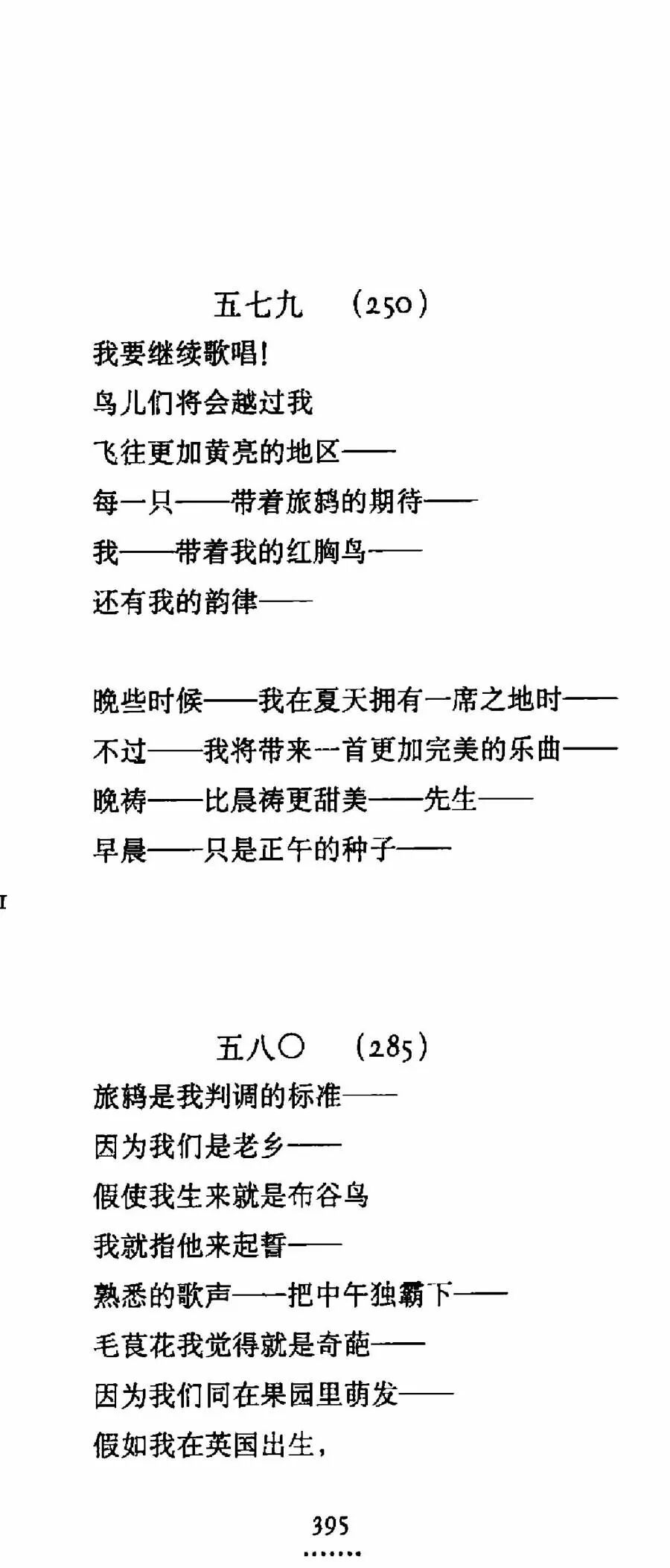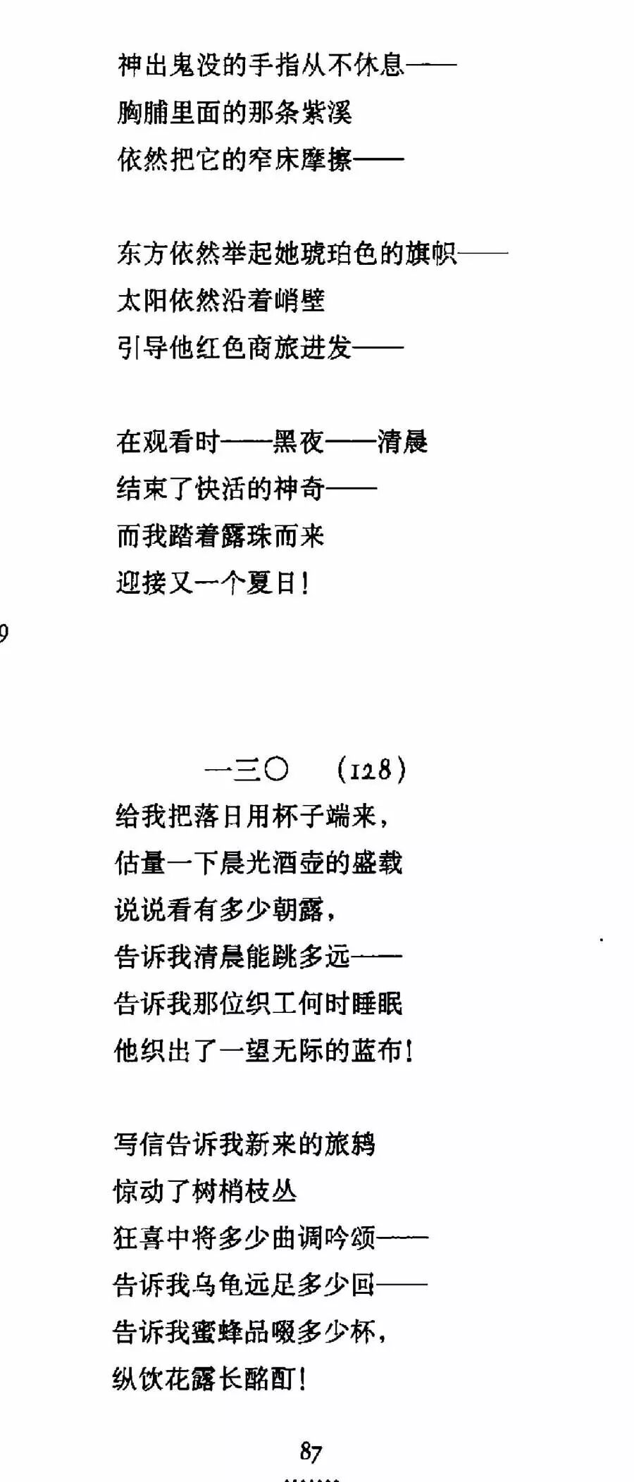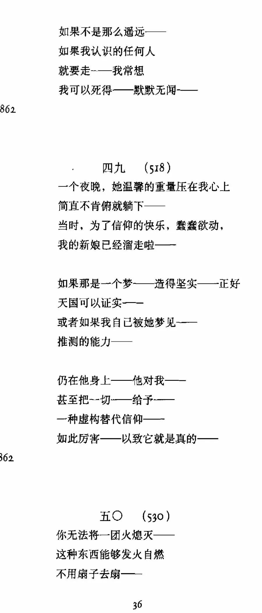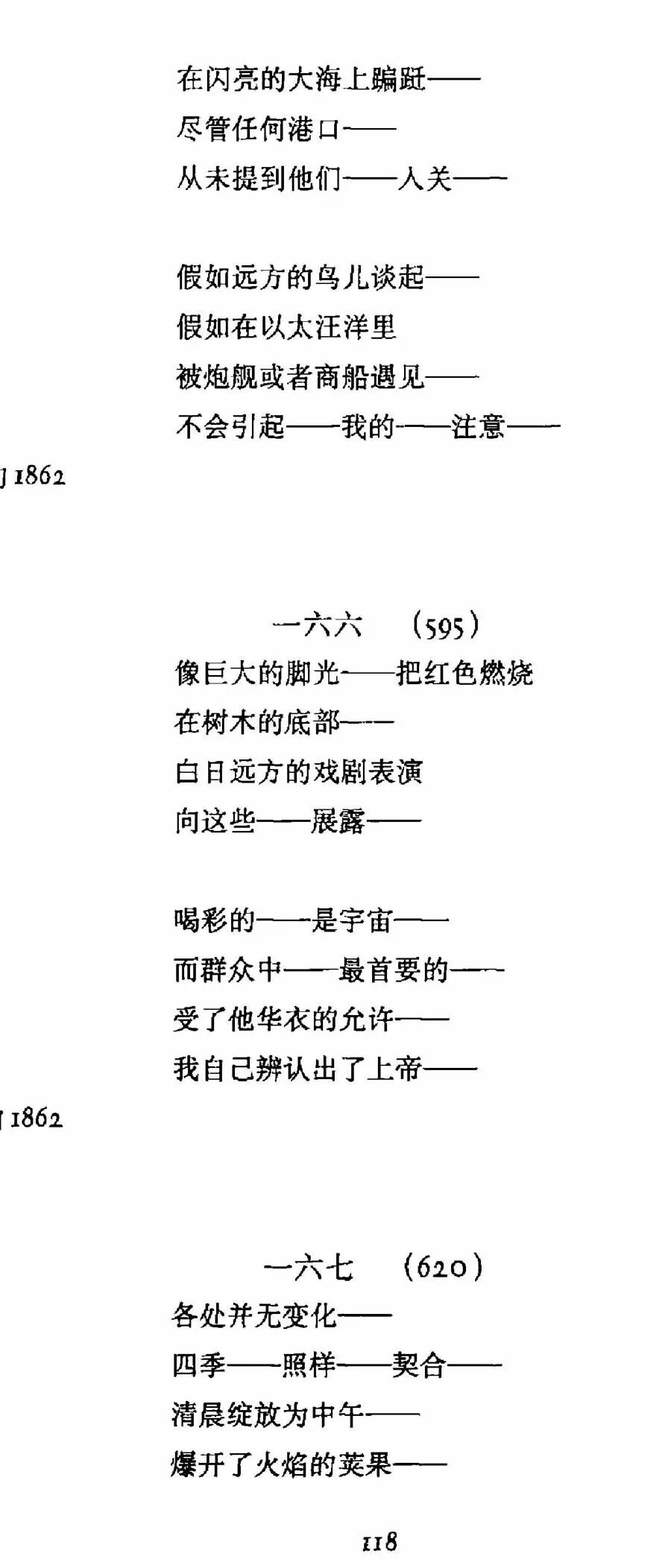 艾米莉·伊丽莎白·狄金森(英语:Emily Elizabeth Dickinson,又译艾弥莉‧狄瑾荪或埃米莉·狄更生,1830年12月10日-1886年5月15日),美国诗人。诗风凝炼,比喻尖新,常置格律以至语法于不顾。生前只发表过10首诗,默默无闻,死后近70年开始得到文学界的认真关注,被现代派诗人追认为先驱。与同时代的惠特曼,一同被奉为美国最伟大诗人,后世对她的诗艺、恋爱生活、性取向多有揣测。