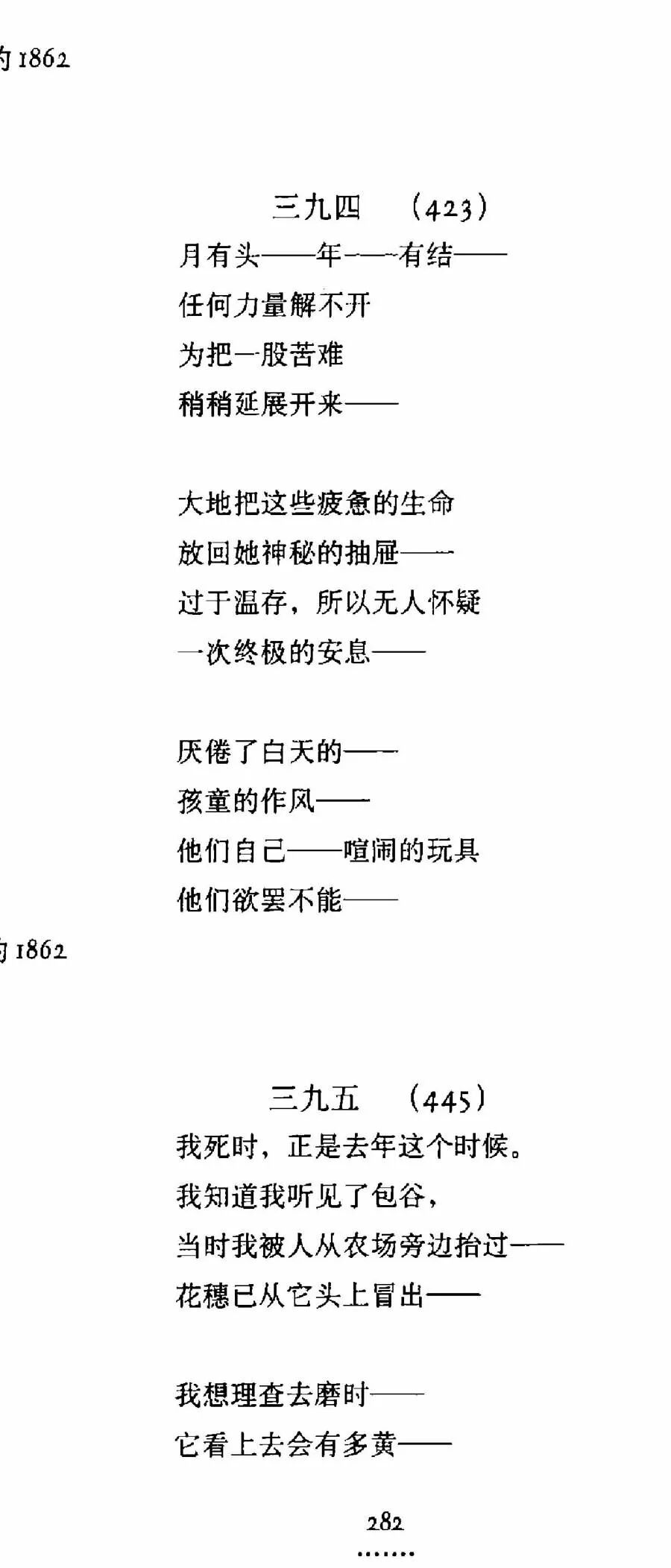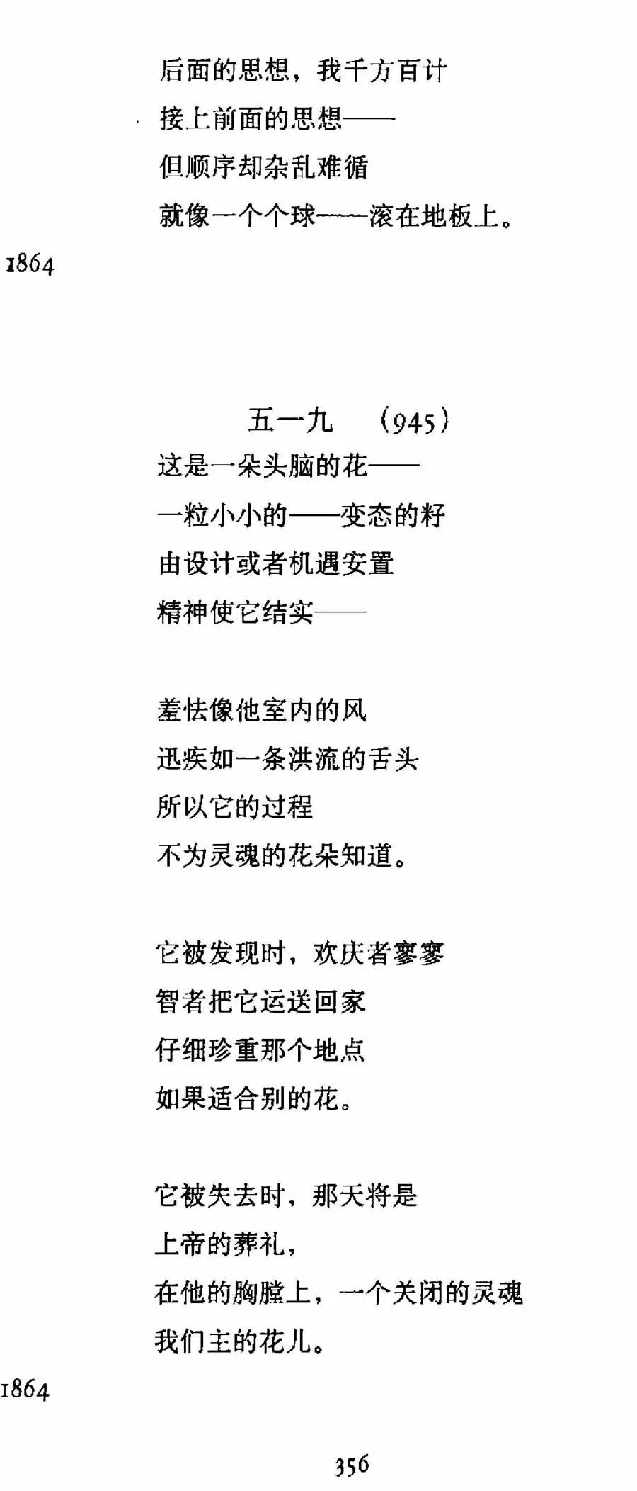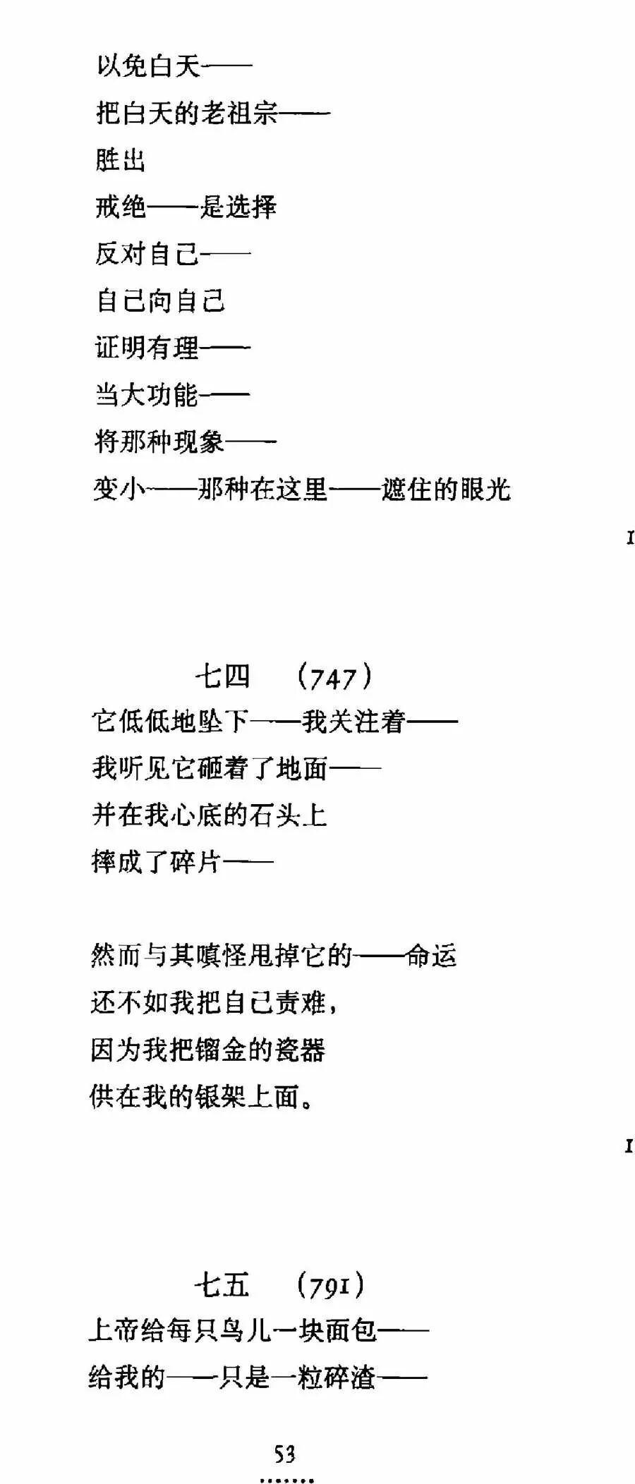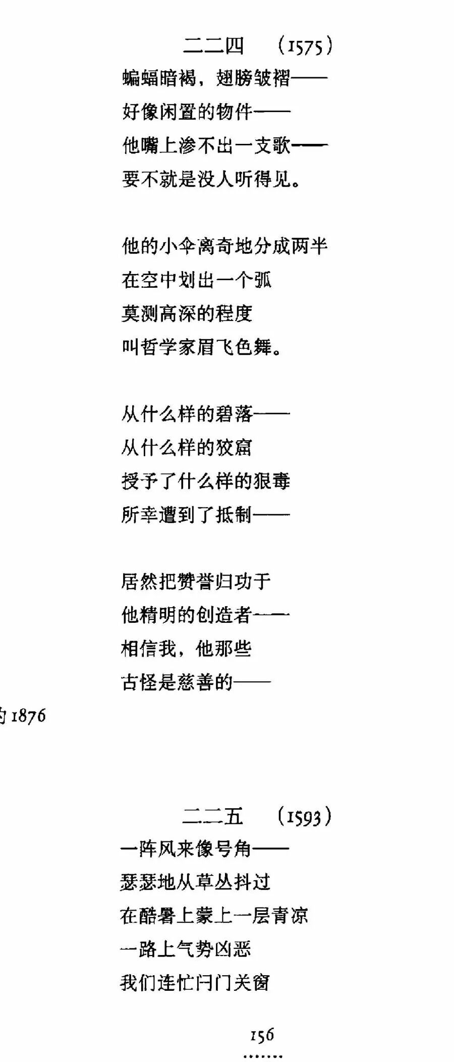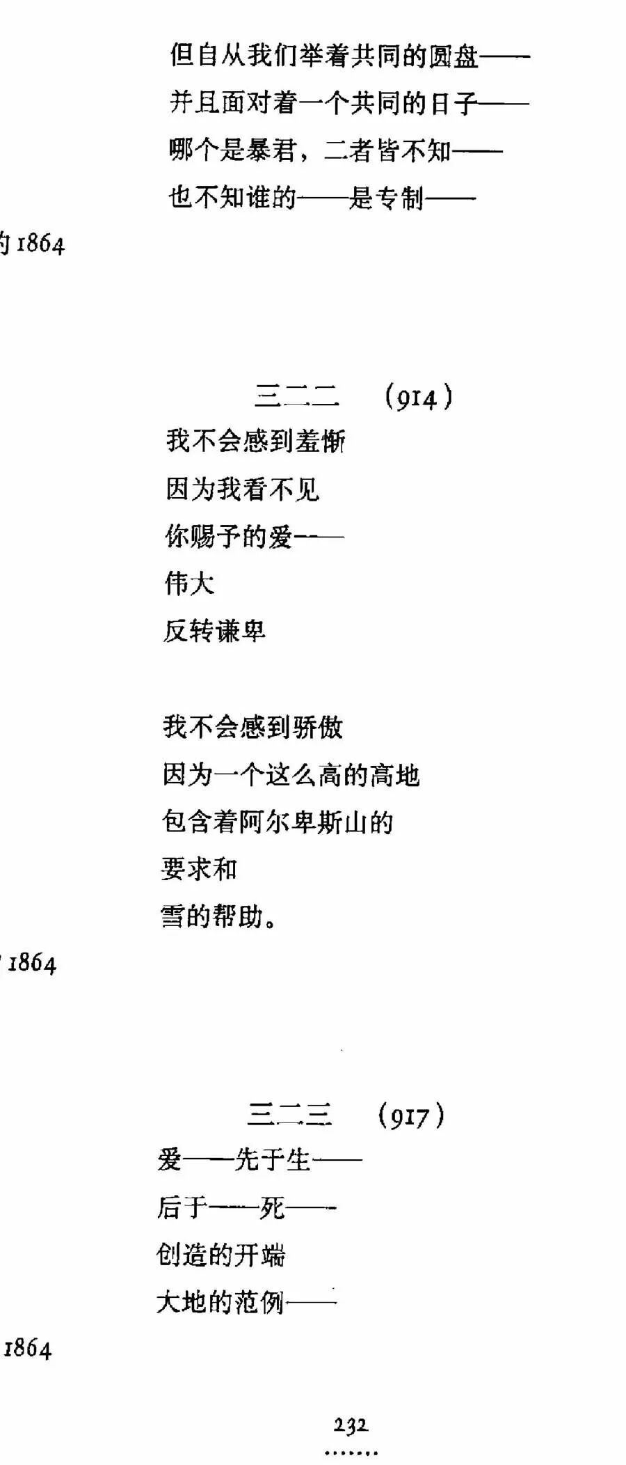 艾米莉·伊丽莎白·狄金森(英语:Emily Elizabeth Dickinson,又译艾弥莉‧狄瑾荪或埃米莉·狄更生,1830年12月10日-1886年5月15日),美国诗人。诗风凝炼,比喻尖新,常置格律以至语法于不顾。生前只发表过10首诗,默默无闻,死后近70年开始得到文学界的认真关注,被现代派诗人追认为先驱。与同时代的惠特曼,一同被奉为美国最伟大诗人,后世对她的诗艺、恋爱生活、性取向多有揣测。