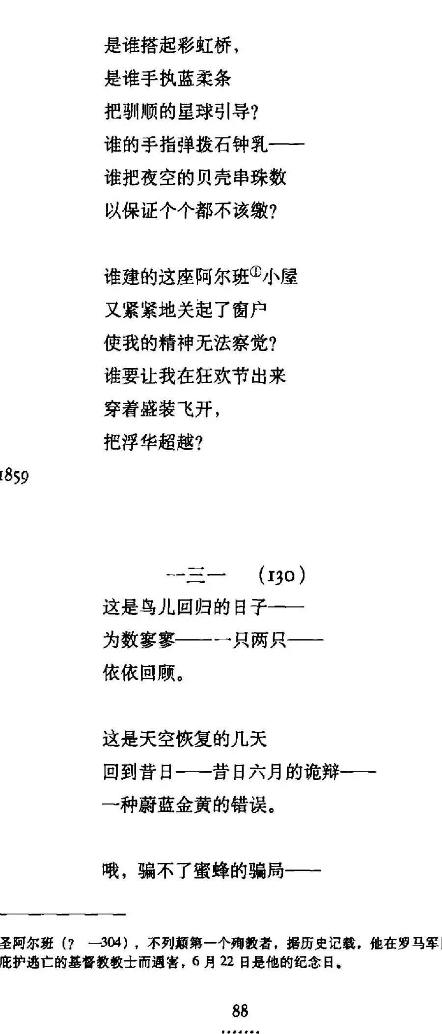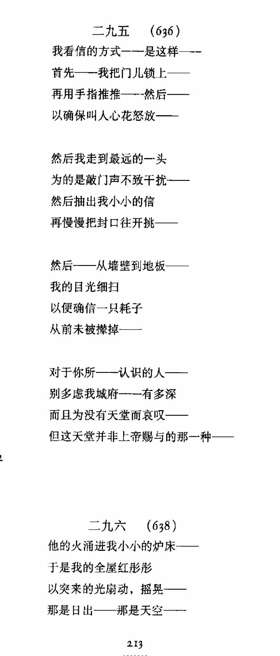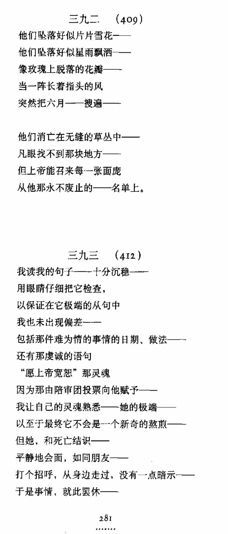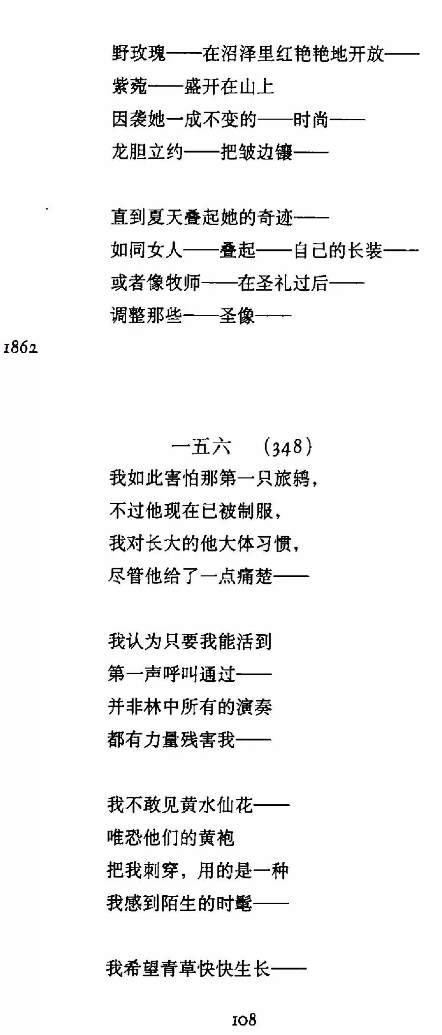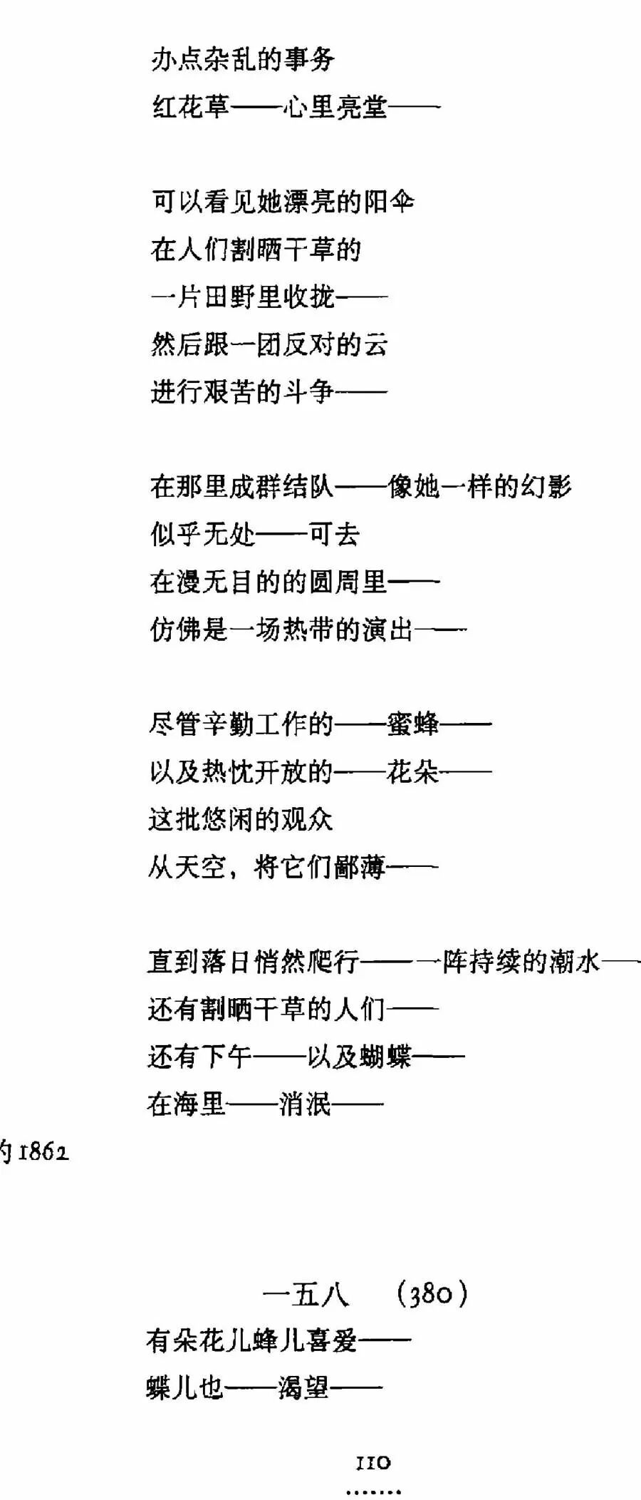 艾米莉·伊丽莎白·狄金森(英语:Emily Elizabeth Dickinson,又译艾弥莉‧狄瑾荪或埃米莉·狄更生,1830年12月10日-1886年5月15日),美国诗人。诗风凝炼,比喻尖新,常置格律以至语法于不顾。生前只发表过10首诗,默默无闻,死后近70年开始得到文学界的认真关注,被现代派诗人追认为先驱。与同时代的惠特曼,一同被奉为美国最伟大诗人,后世对她的诗艺、恋爱生活、性取向多有揣测。