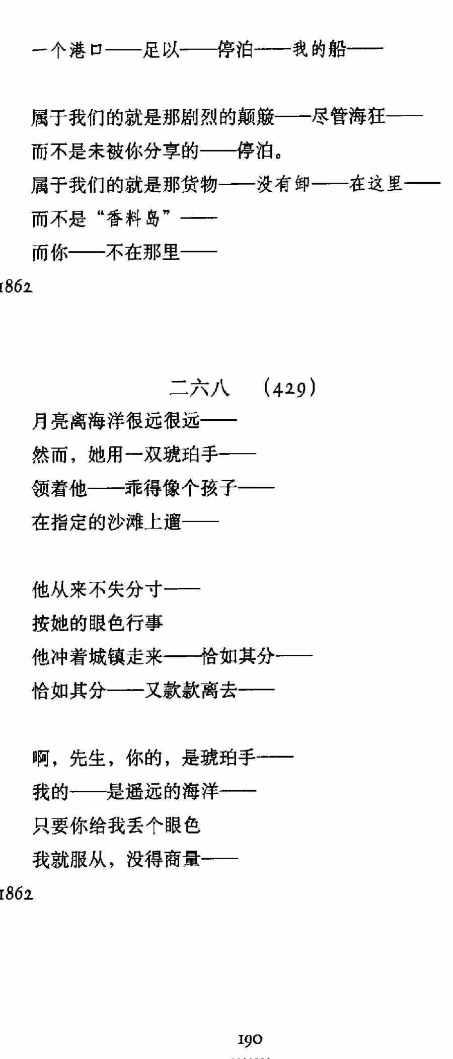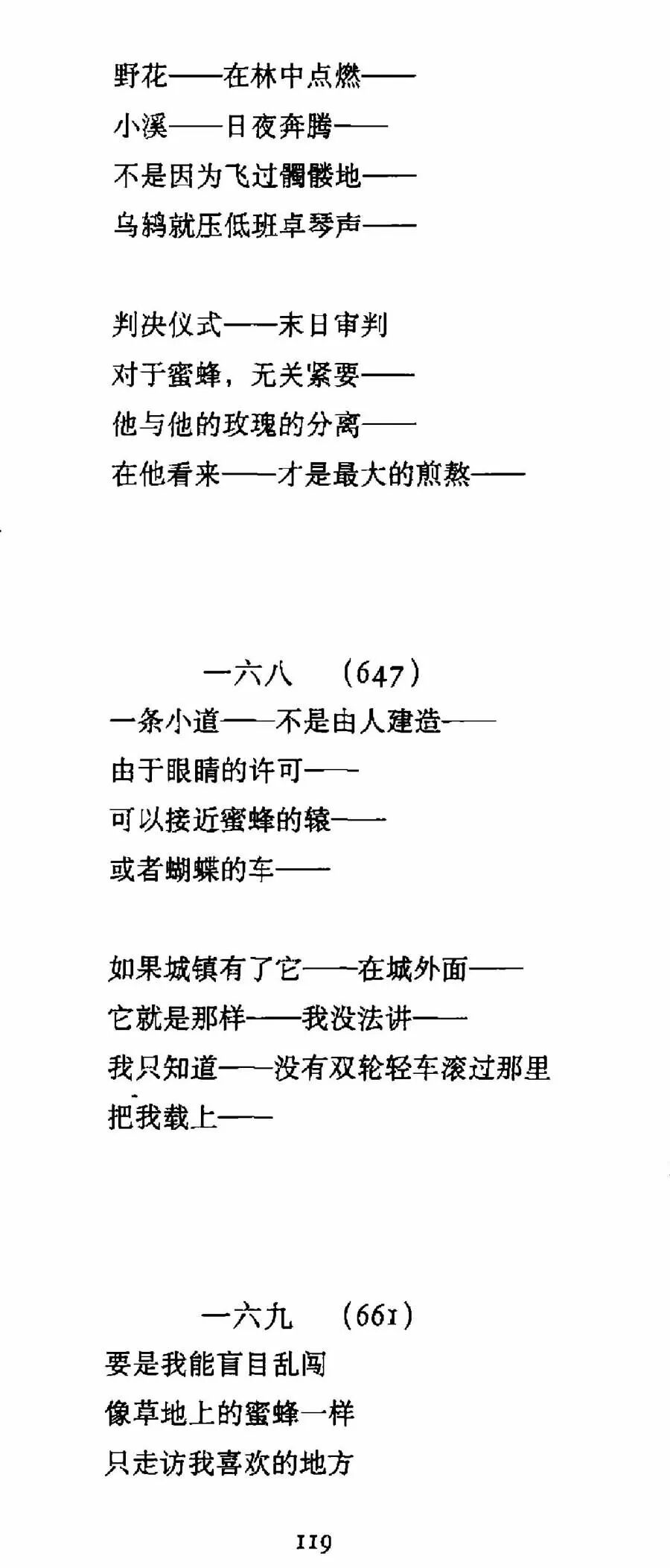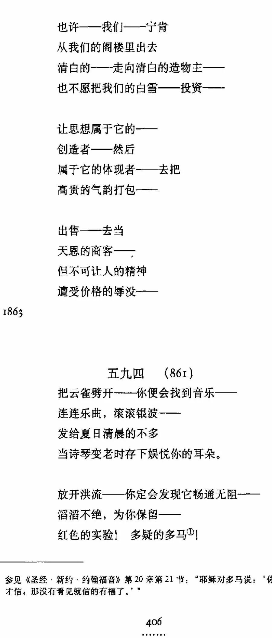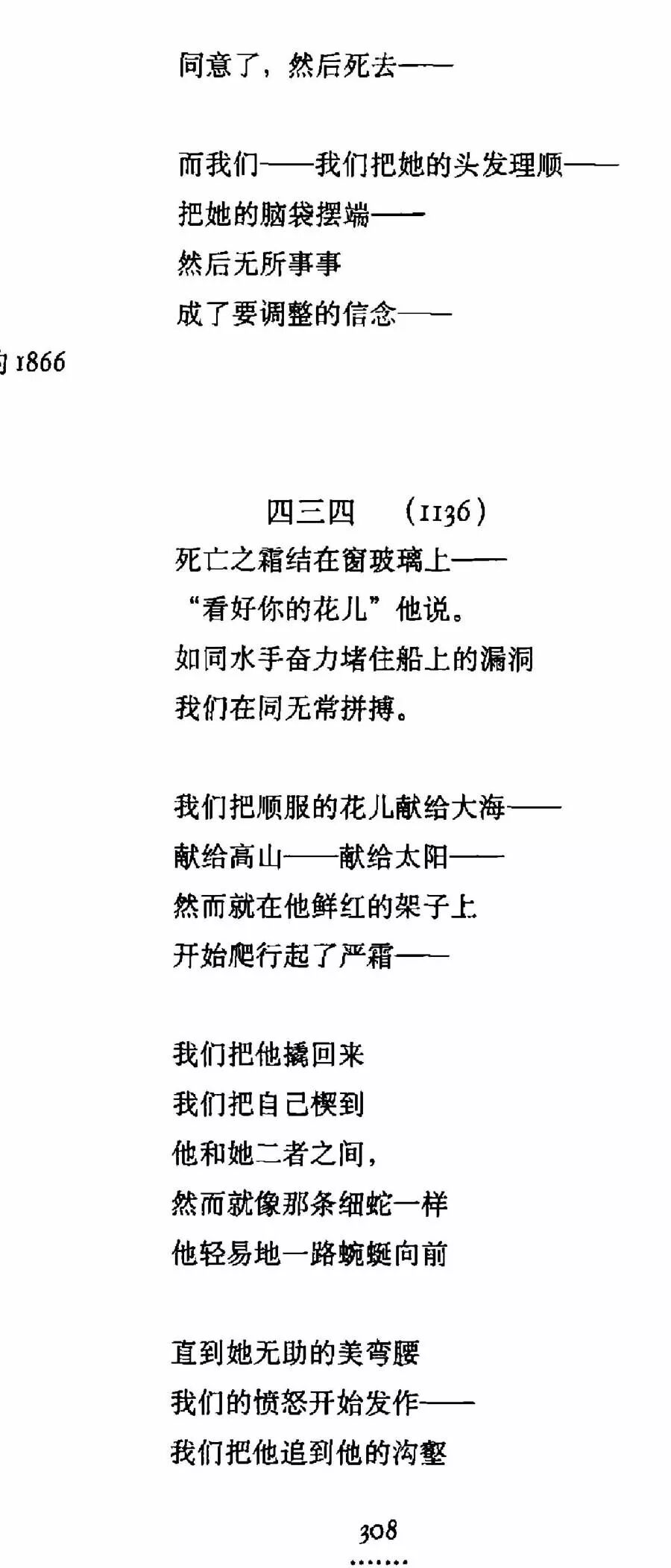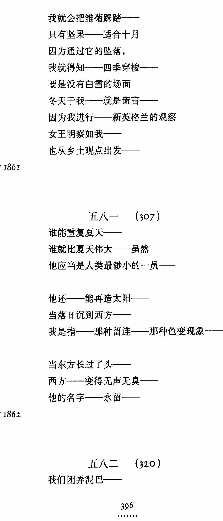 艾米莉·伊丽莎白·狄金森(英语:Emily Elizabeth Dickinson,又译艾弥莉‧狄瑾荪或埃米莉·狄更生,1830年12月10日-1886年5月15日),美国诗人。诗风凝炼,比喻尖新,常置格律以至语法于不顾。生前只发表过10首诗,默默无闻,死后近70年开始得到文学界的认真关注,被现代派诗人追认为先驱。与同时代的惠特曼,一同被奉为美国最伟大诗人,后世对她的诗艺、恋爱生活、性取向多有揣测。