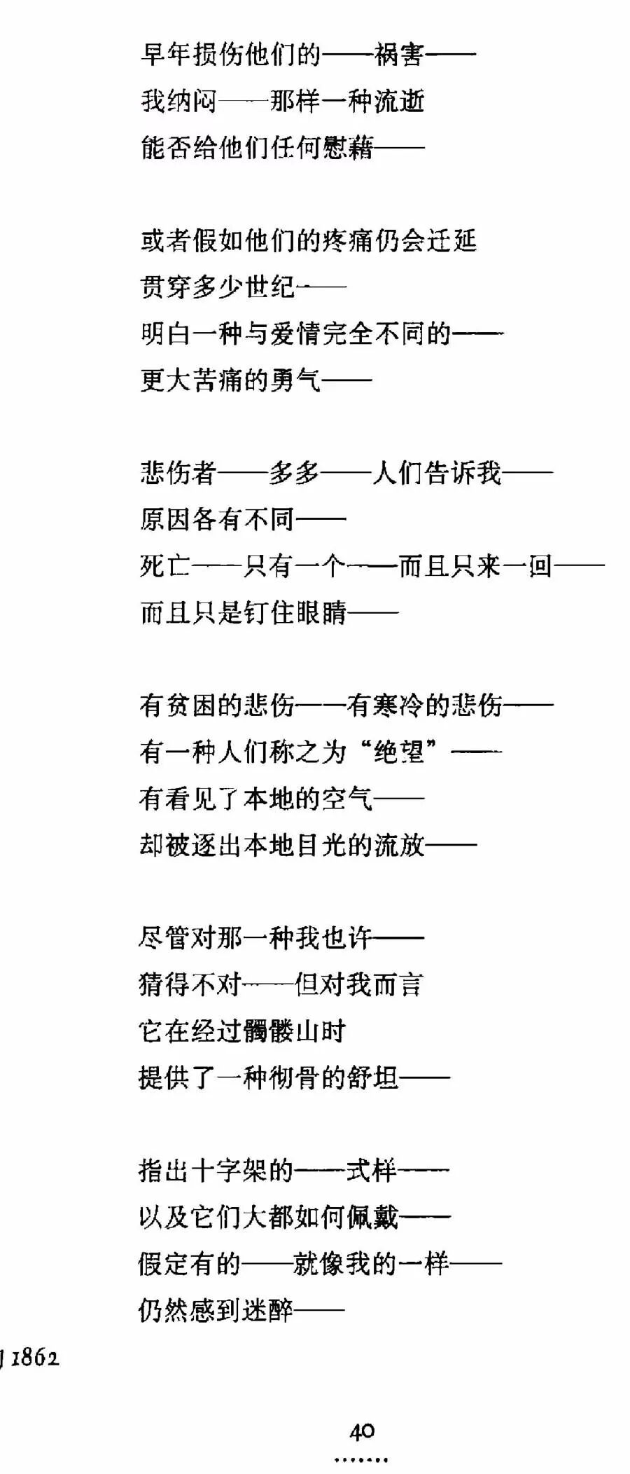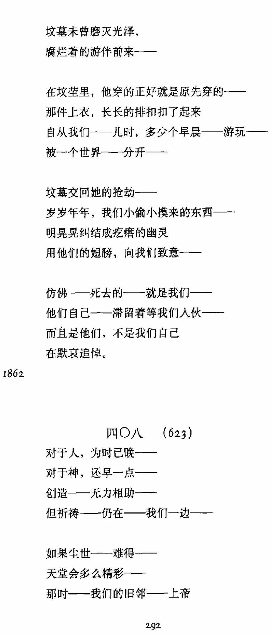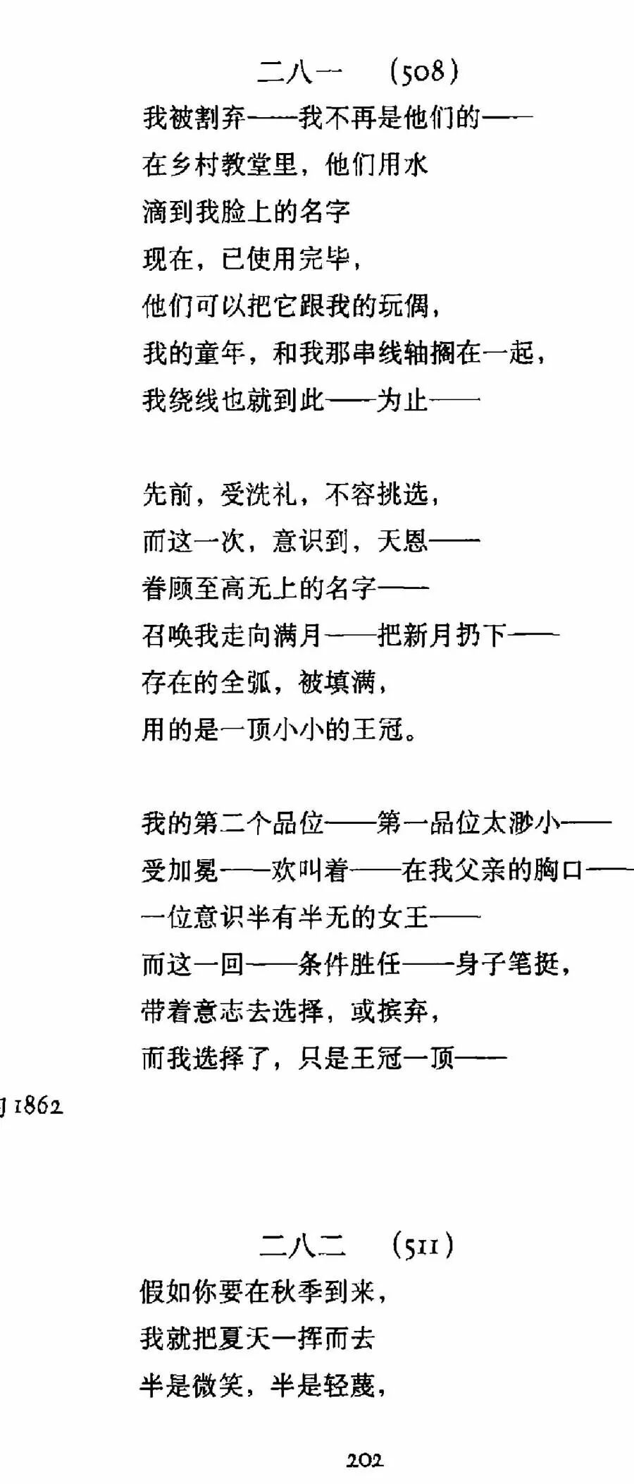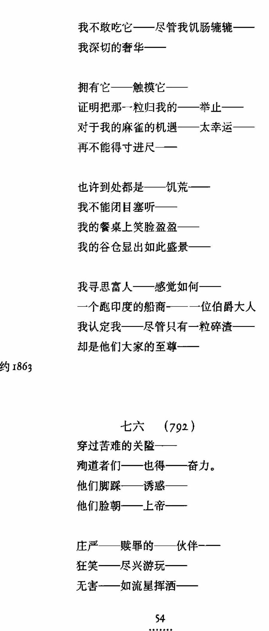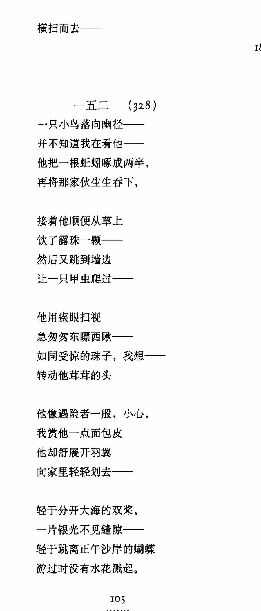 艾米莉·伊丽莎白·狄金森(英语:Emily Elizabeth Dickinson,又译艾弥莉‧狄瑾荪或埃米莉·狄更生,1830年12月10日-1886年5月15日),美国诗人。诗风凝炼,比喻尖新,常置格律以至语法于不顾。生前只发表过10首诗,默默无闻,死后近70年开始得到文学界的认真关注,被现代派诗人追认为先驱。与同时代的惠特曼,一同被奉为美国最伟大诗人,后世对她的诗艺、恋爱生活、性取向多有揣测。