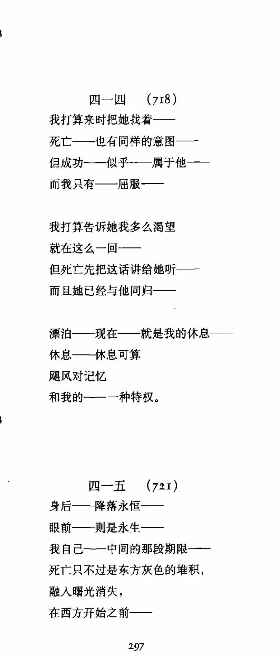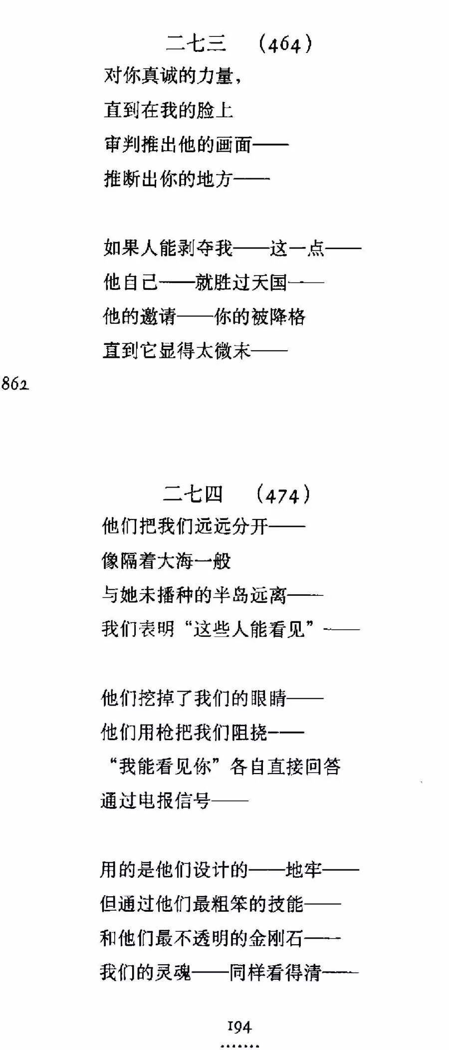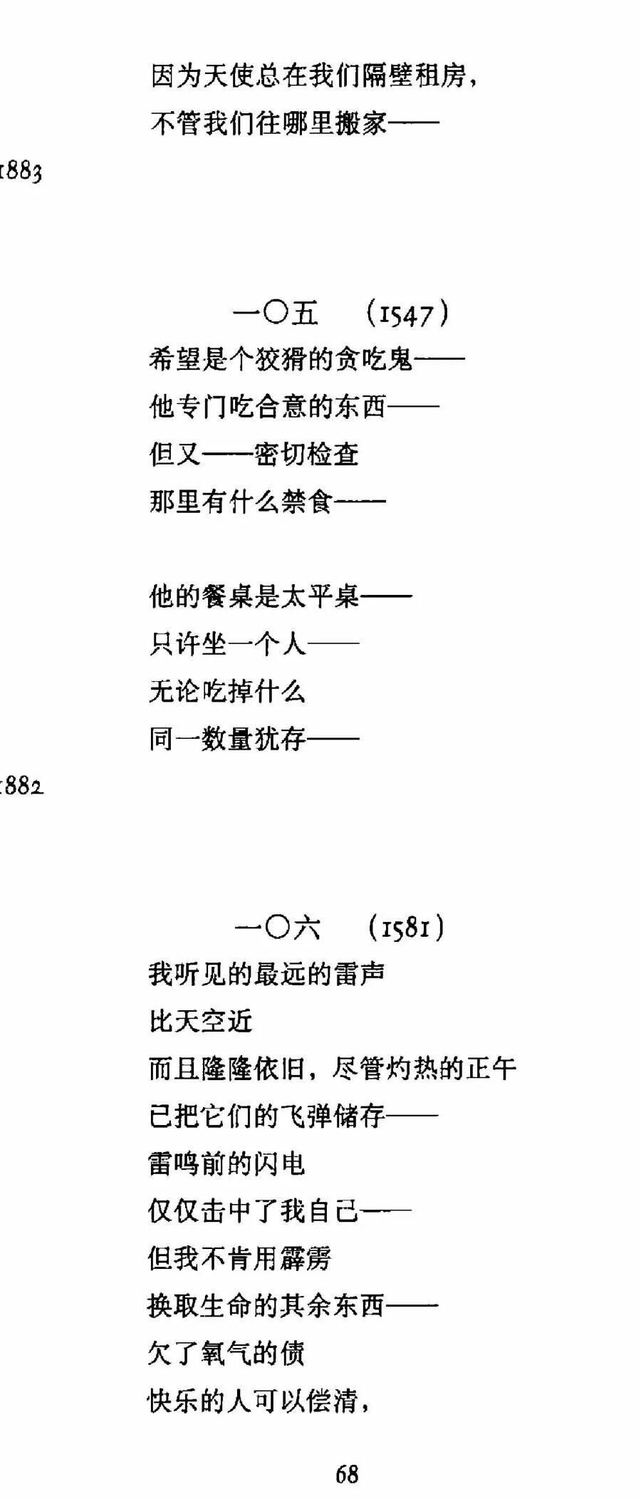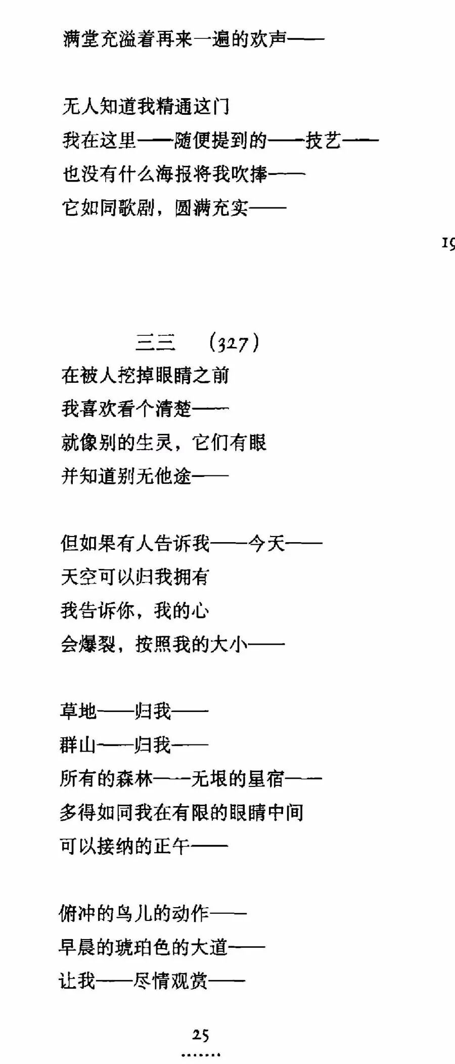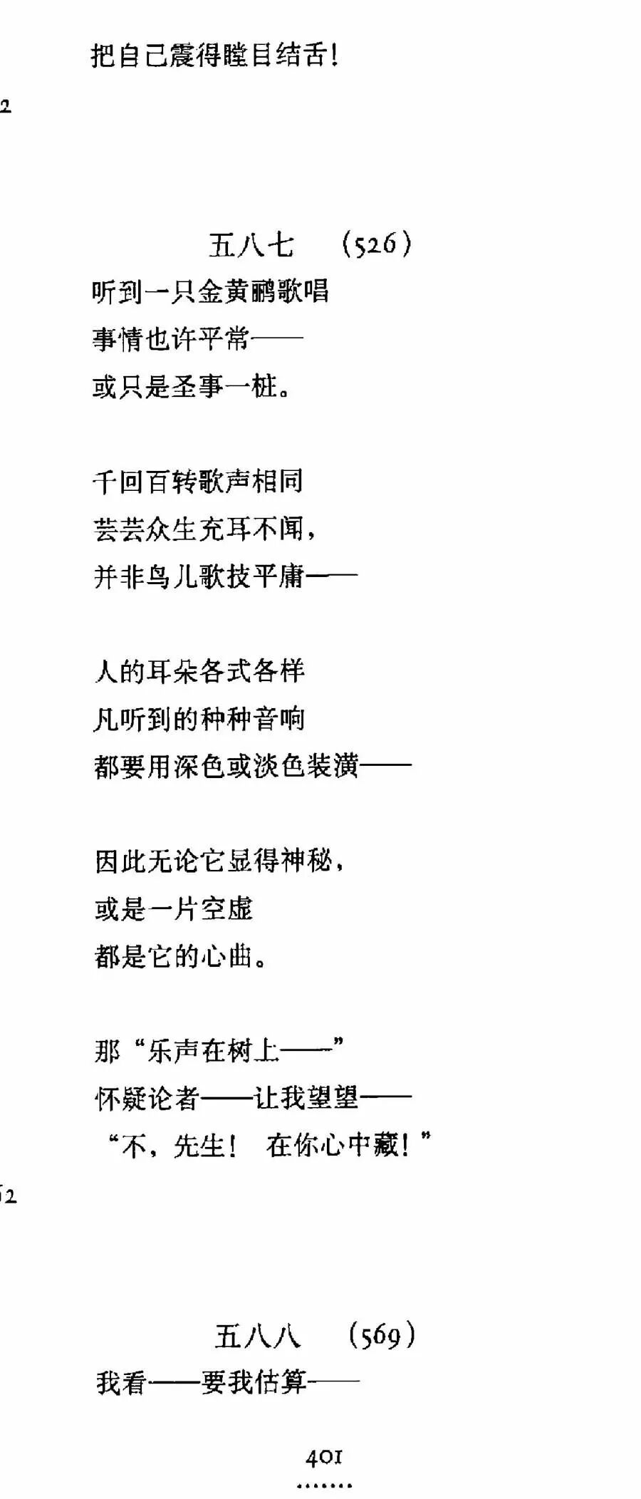 艾米莉·伊丽莎白·狄金森(英语:Emily Elizabeth Dickinson,又译艾弥莉‧狄瑾荪或埃米莉·狄更生,1830年12月10日-1886年5月15日),美国诗人。诗风凝炼,比喻尖新,常置格律以至语法于不顾。生前只发表过10首诗,默默无闻,死后近70年开始得到文学界的认真关注,被现代派诗人追认为先驱。与同时代的惠特曼,一同被奉为美国最伟大诗人,后世对她的诗艺、恋爱生活、性取向多有揣测。