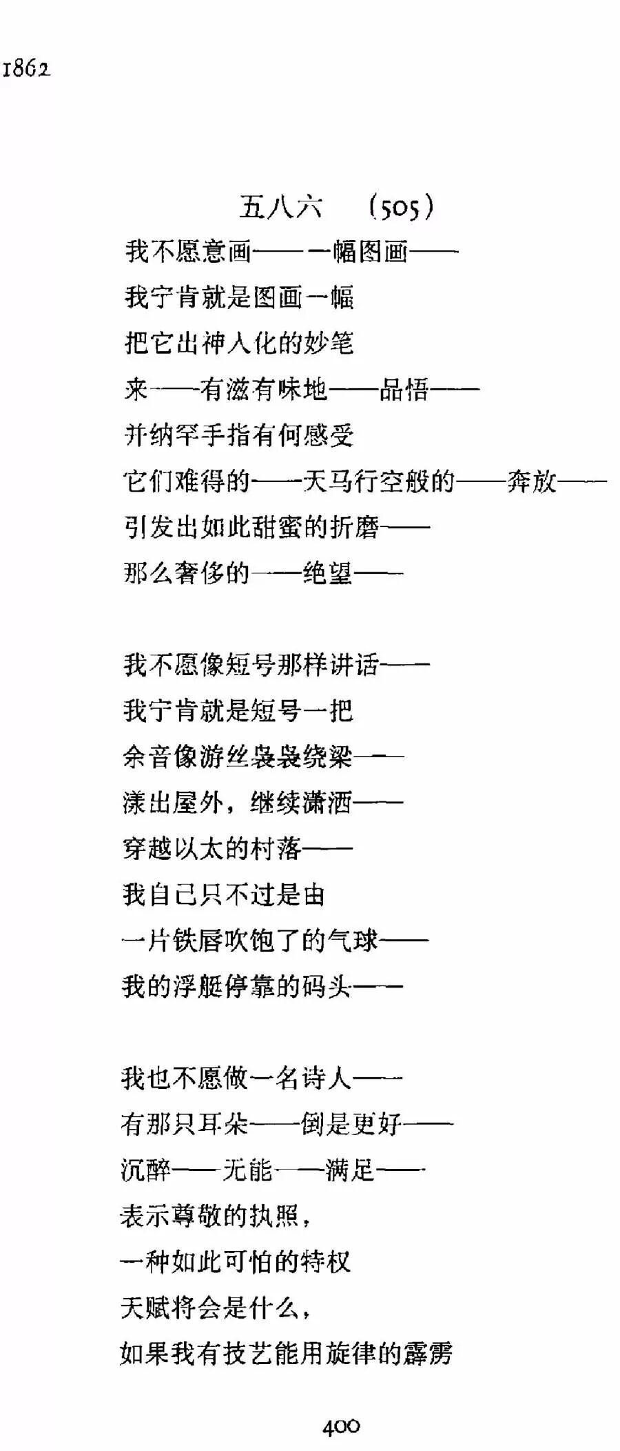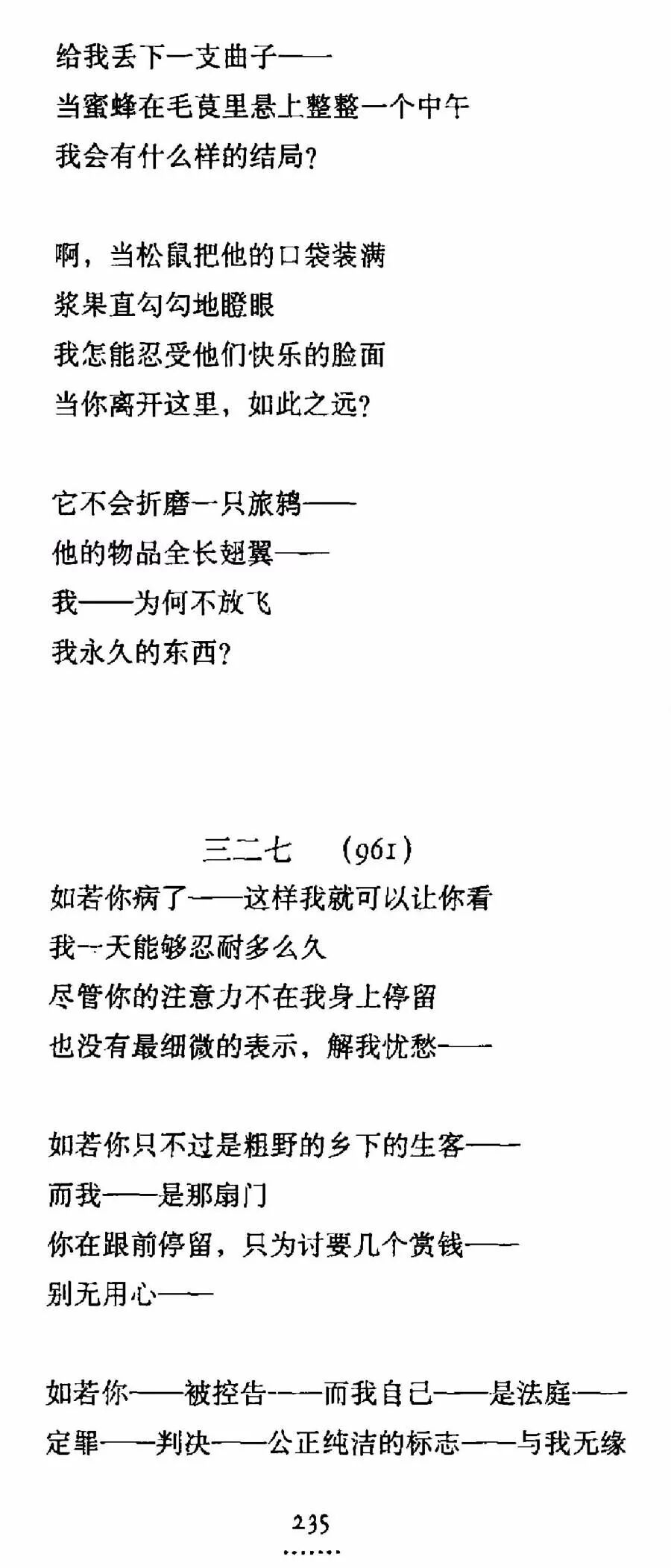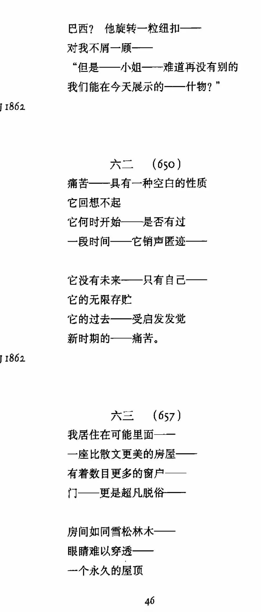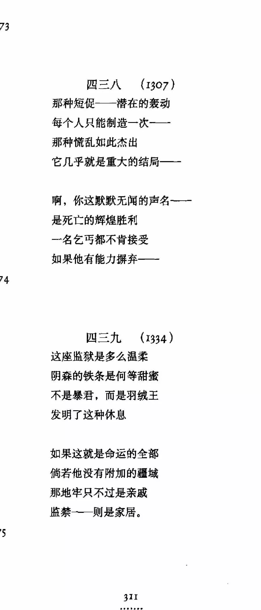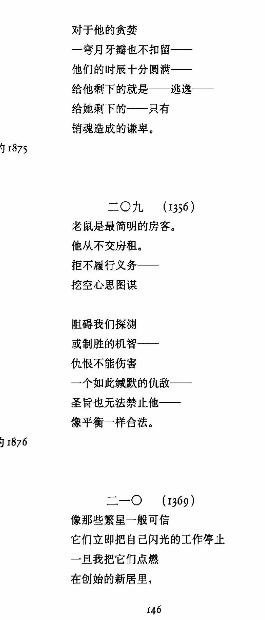 艾米莉·伊丽莎白·狄金森(英语:Emily Elizabeth Dickinson,又译艾弥莉‧狄瑾荪或埃米莉·狄更生,1830年12月10日-1886年5月15日),美国诗人。诗风凝炼,比喻尖新,常置格律以至语法于不顾。生前只发表过10首诗,默默无闻,死后近70年开始得到文学界的认真关注,被现代派诗人追认为先驱。与同时代的惠特曼,一同被奉为美国最伟大诗人,后世对她的诗艺、恋爱生活、性取向多有揣测。