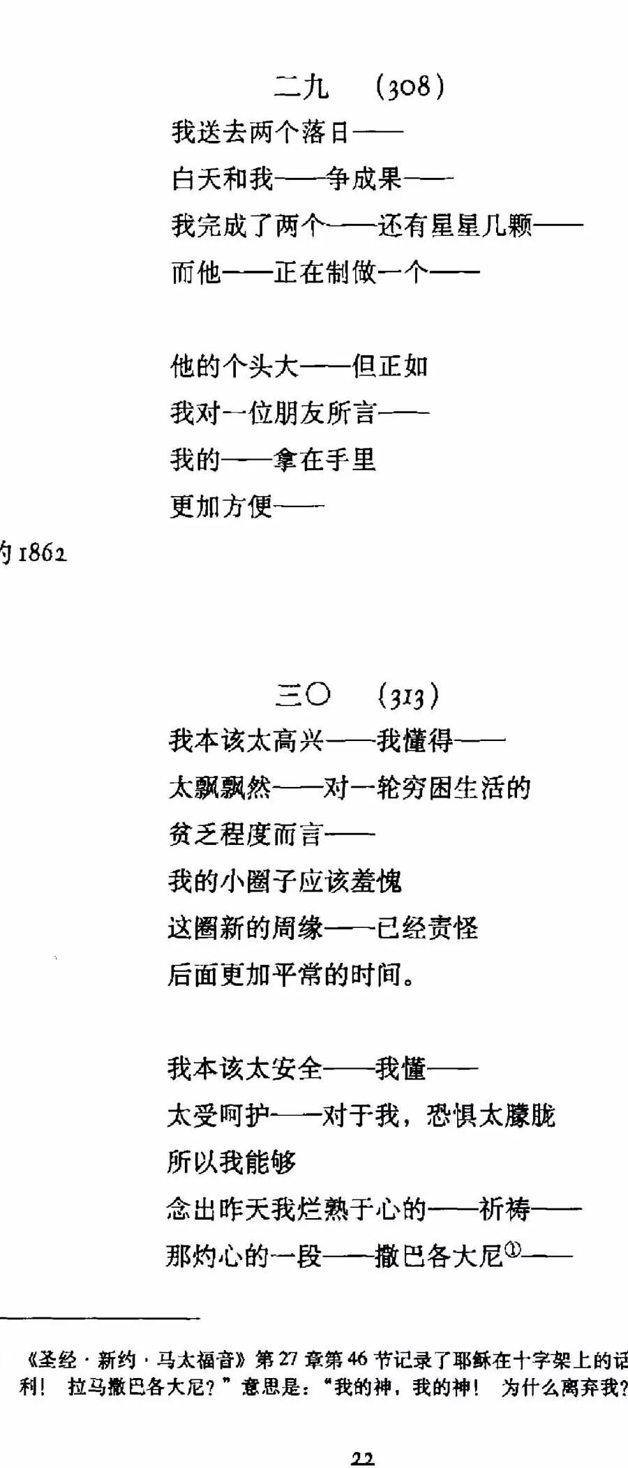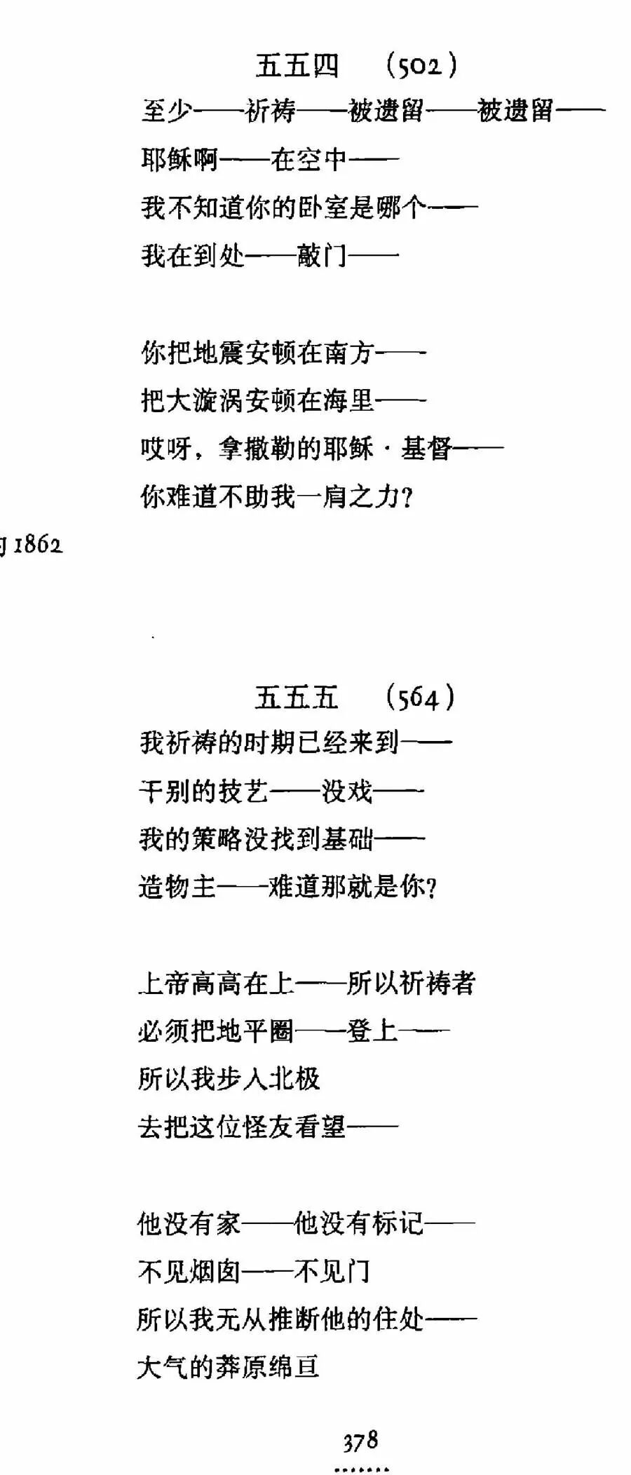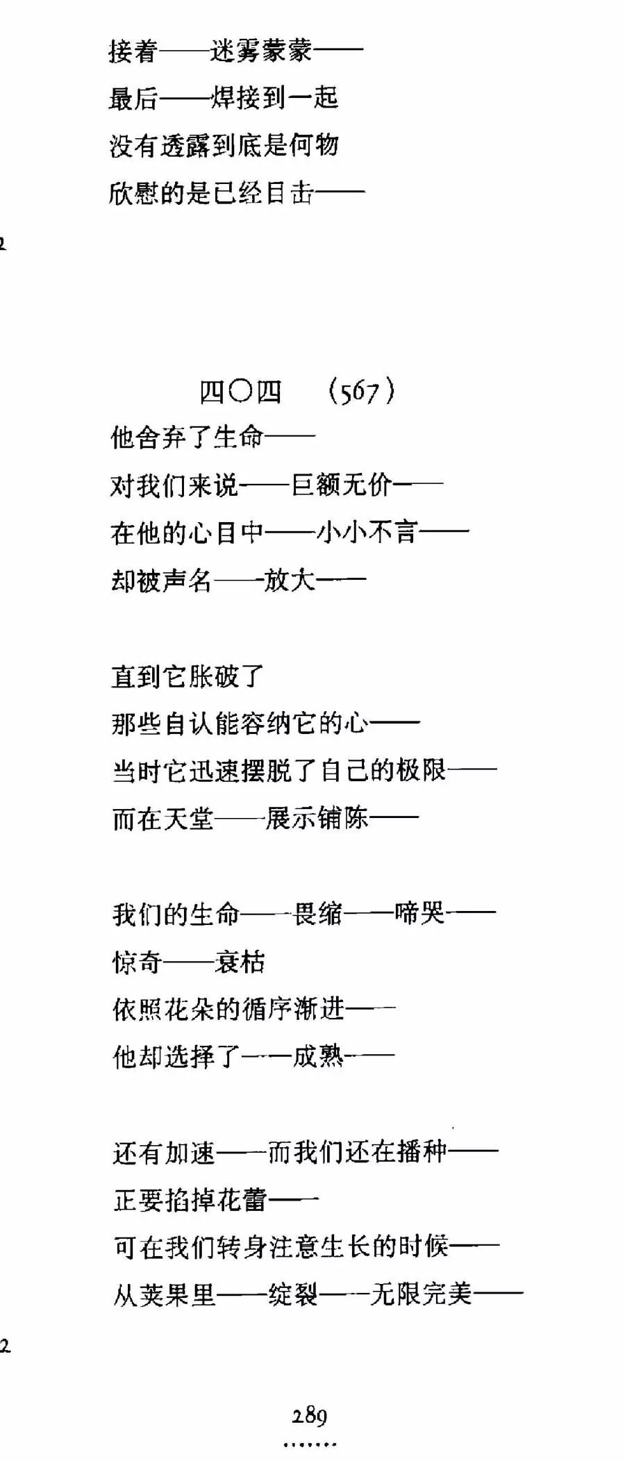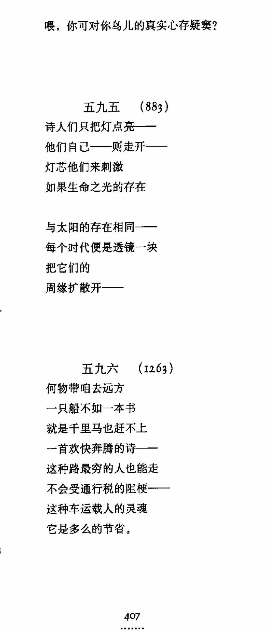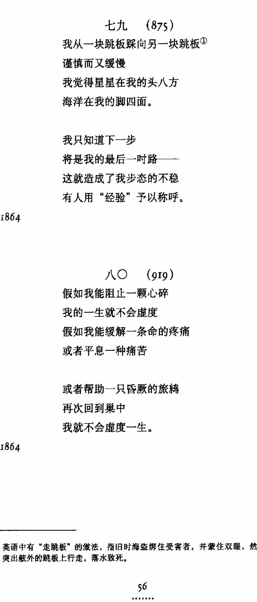 艾米莉·伊丽莎白·狄金森(英语:Emily Elizabeth Dickinson,又译艾弥莉‧狄瑾荪或埃米莉·狄更生,1830年12月10日-1886年5月15日),美国诗人。诗风凝炼,比喻尖新,常置格律以至语法于不顾。生前只发表过10首诗,默默无闻,死后近70年开始得到文学界的认真关注,被现代派诗人追认为先驱。与同时代的惠特曼,一同被奉为美国最伟大诗人,后世对她的诗艺、恋爱生活、性取向多有揣测。