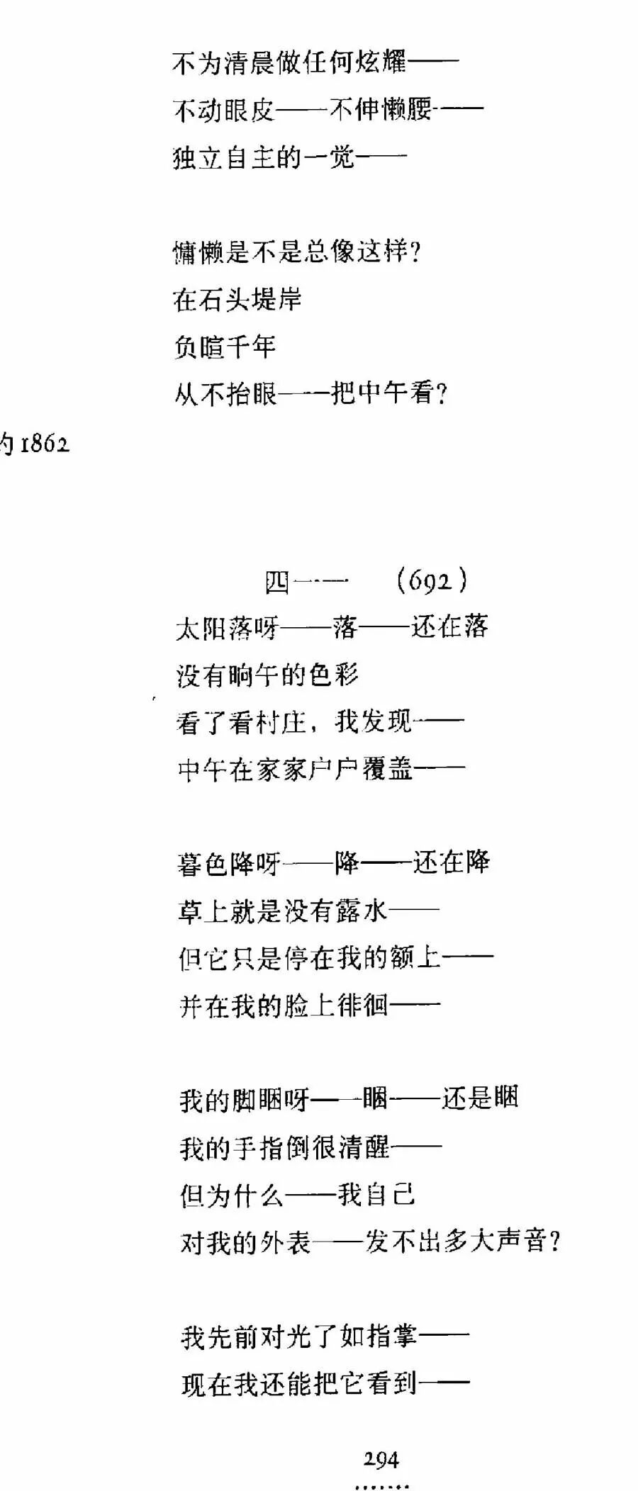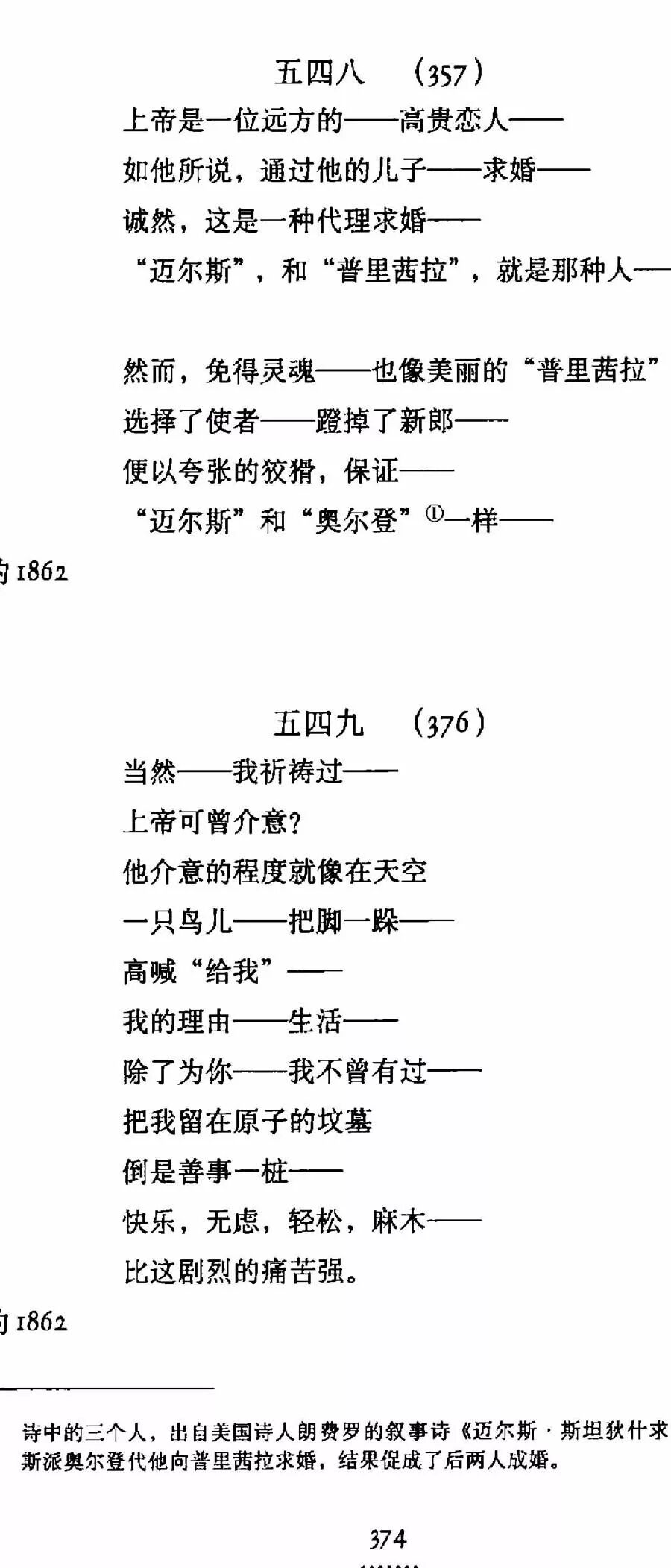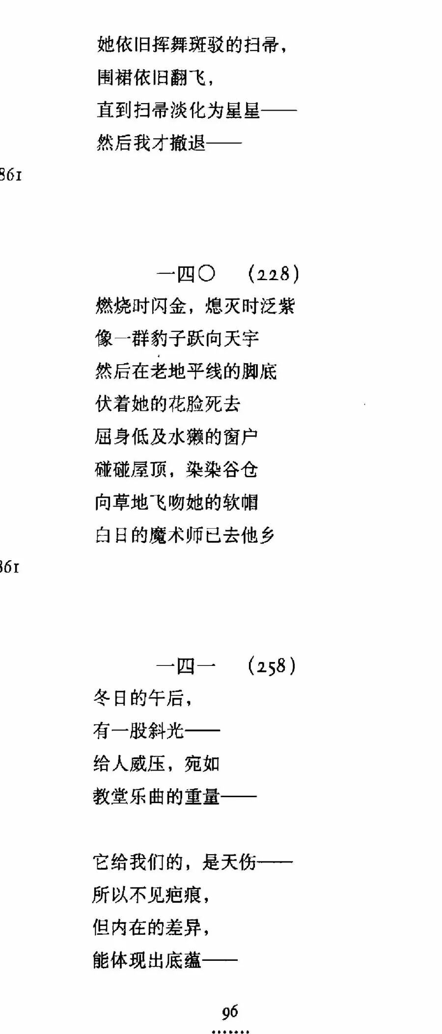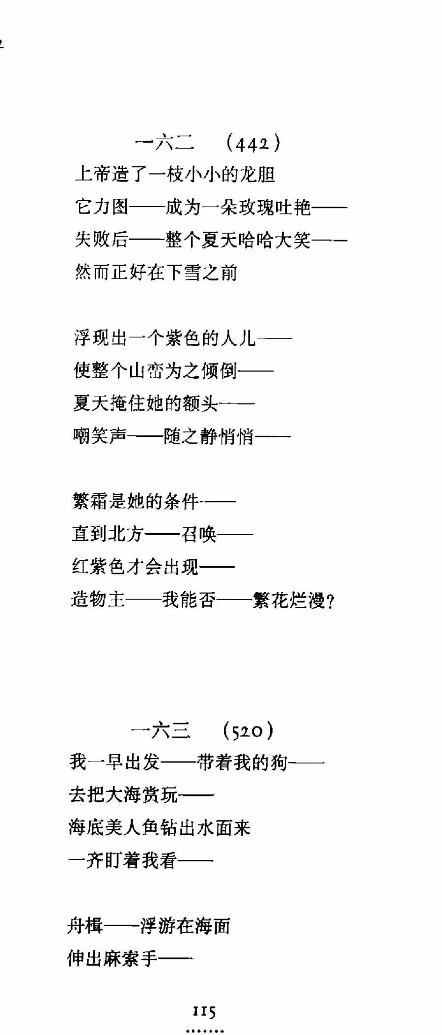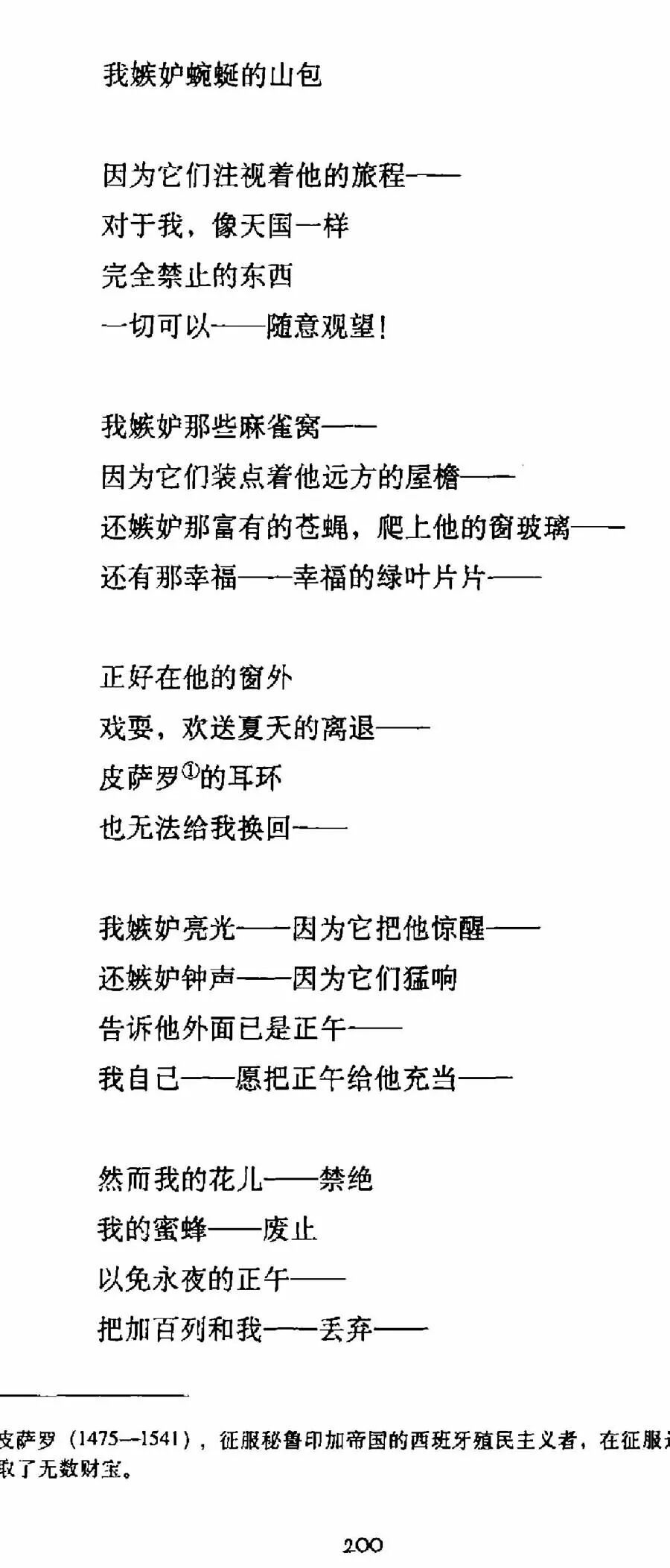 艾米莉·伊丽莎白·狄金森(英语:Emily Elizabeth Dickinson,又译艾弥莉‧狄瑾荪或埃米莉·狄更生,1830年12月10日-1886年5月15日),美国诗人。诗风凝炼,比喻尖新,常置格律以至语法于不顾。生前只发表过10首诗,默默无闻,死后近70年开始得到文学界的认真关注,被现代派诗人追认为先驱。与同时代的惠特曼,一同被奉为美国最伟大诗人,后世对她的诗艺、恋爱生活、性取向多有揣测。