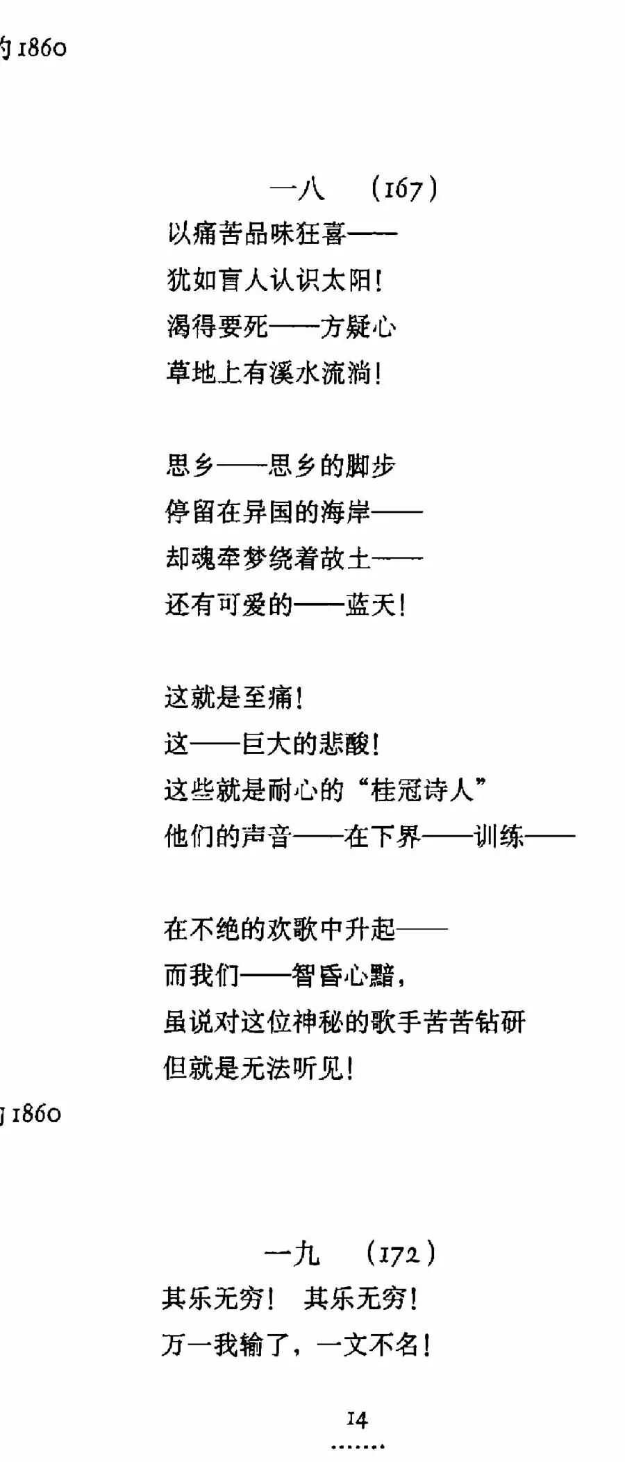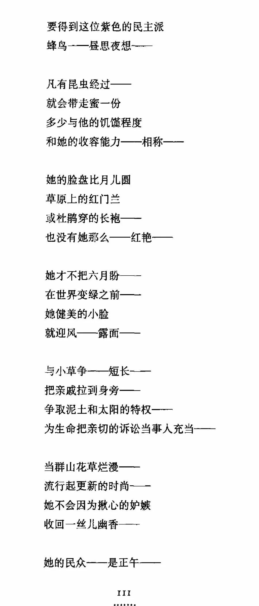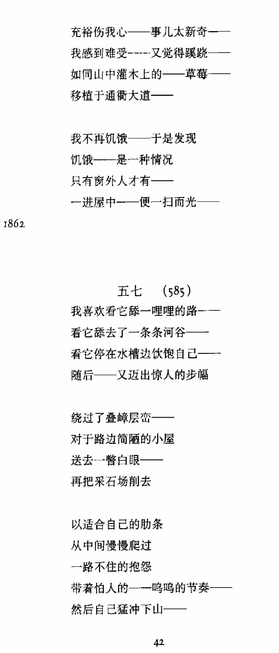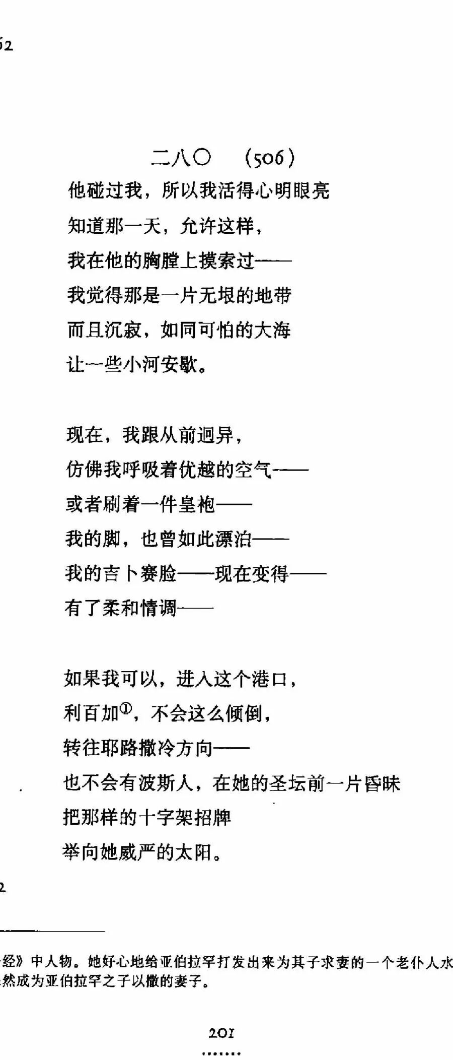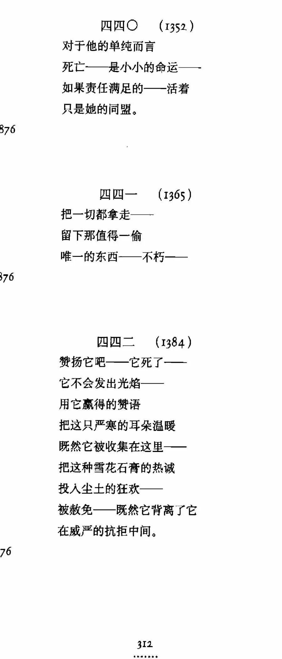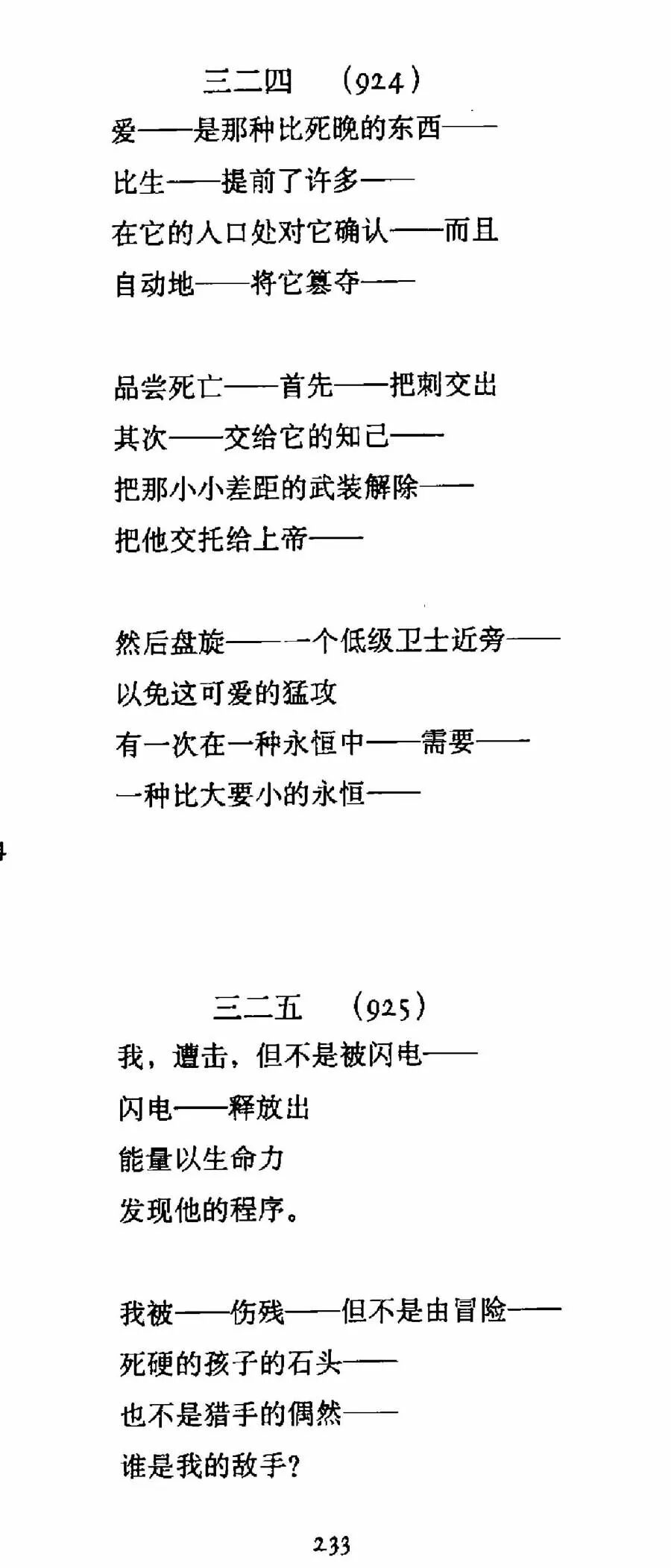 艾米莉·伊丽莎白·狄金森(英语:Emily Elizabeth Dickinson,又译艾弥莉‧狄瑾荪或埃米莉·狄更生,1830年12月10日-1886年5月15日),美国诗人。诗风凝炼,比喻尖新,常置格律以至语法于不顾。生前只发表过10首诗,默默无闻,死后近70年开始得到文学界的认真关注,被现代派诗人追认为先驱。与同时代的惠特曼,一同被奉为美国最伟大诗人,后世对她的诗艺、恋爱生活、性取向多有揣测。