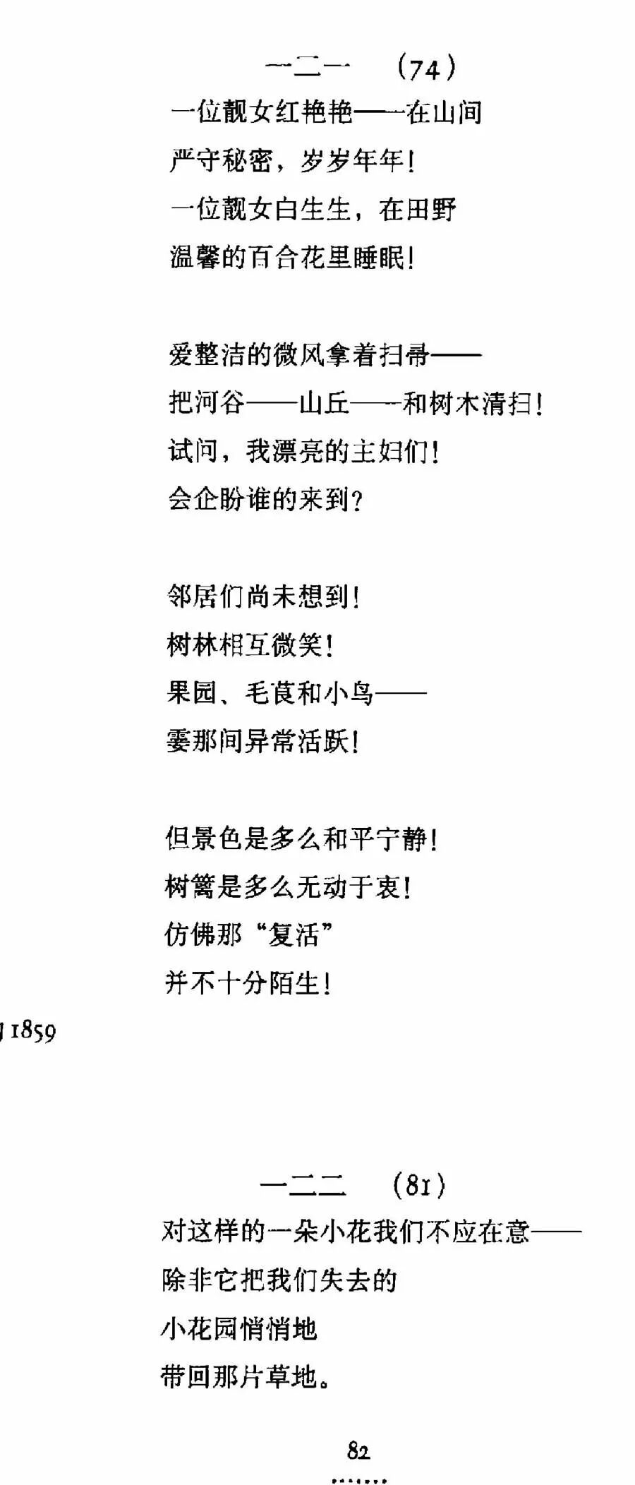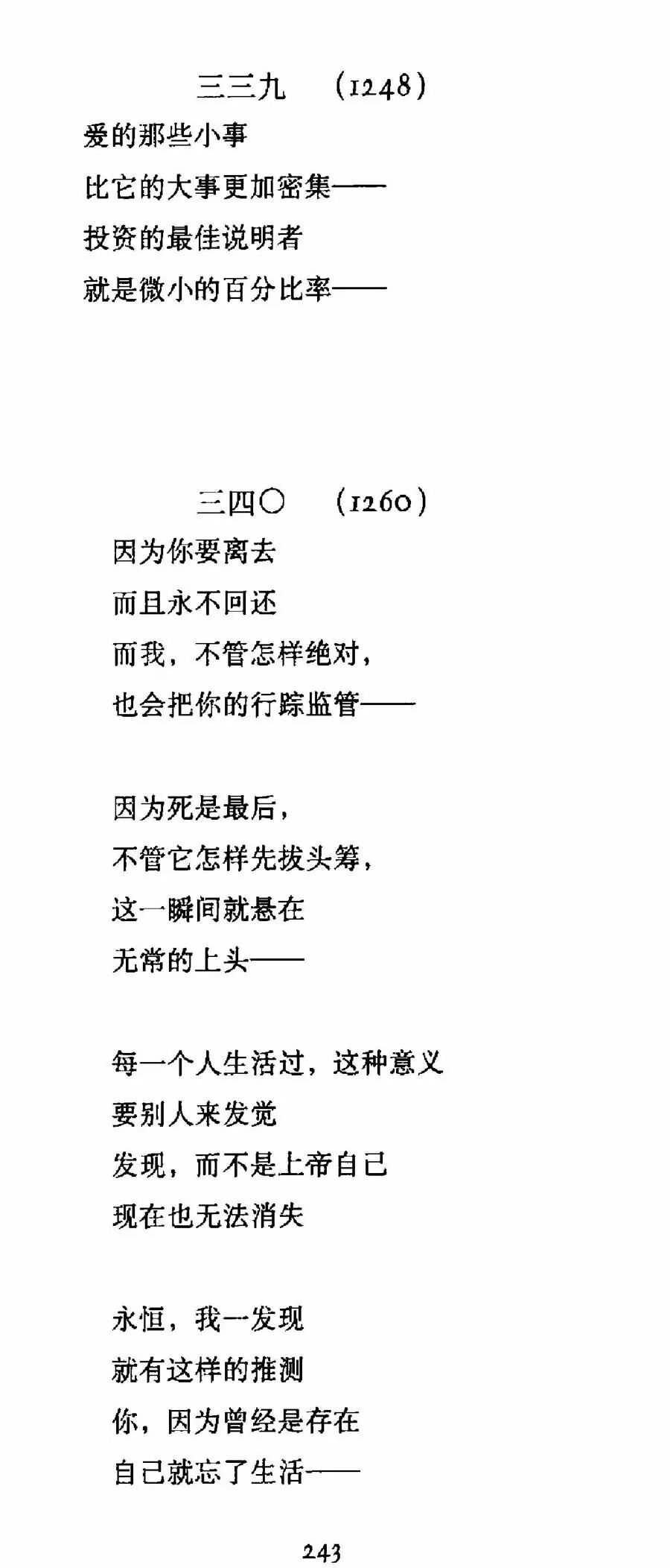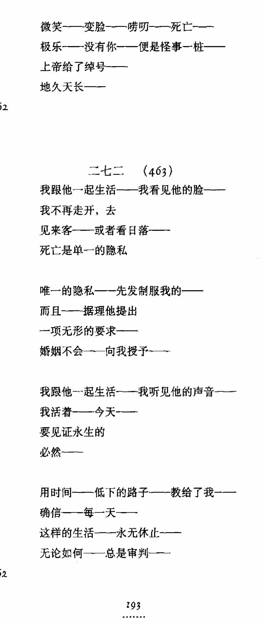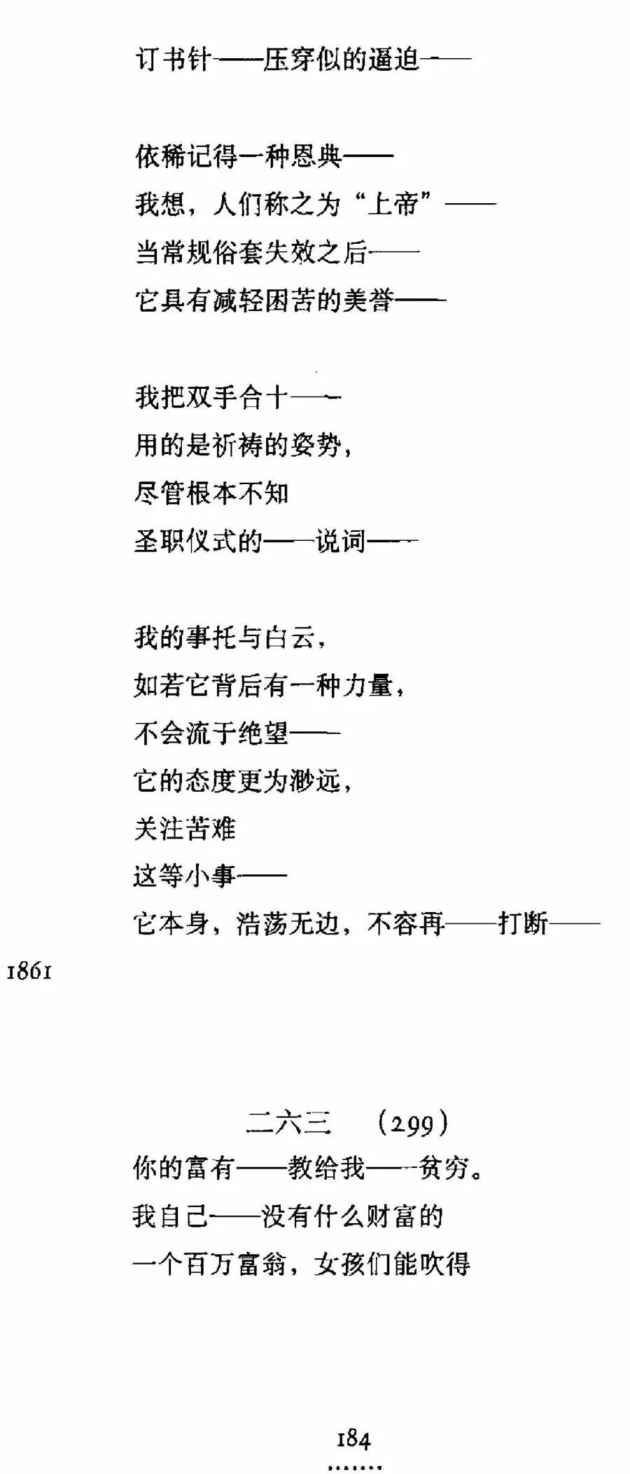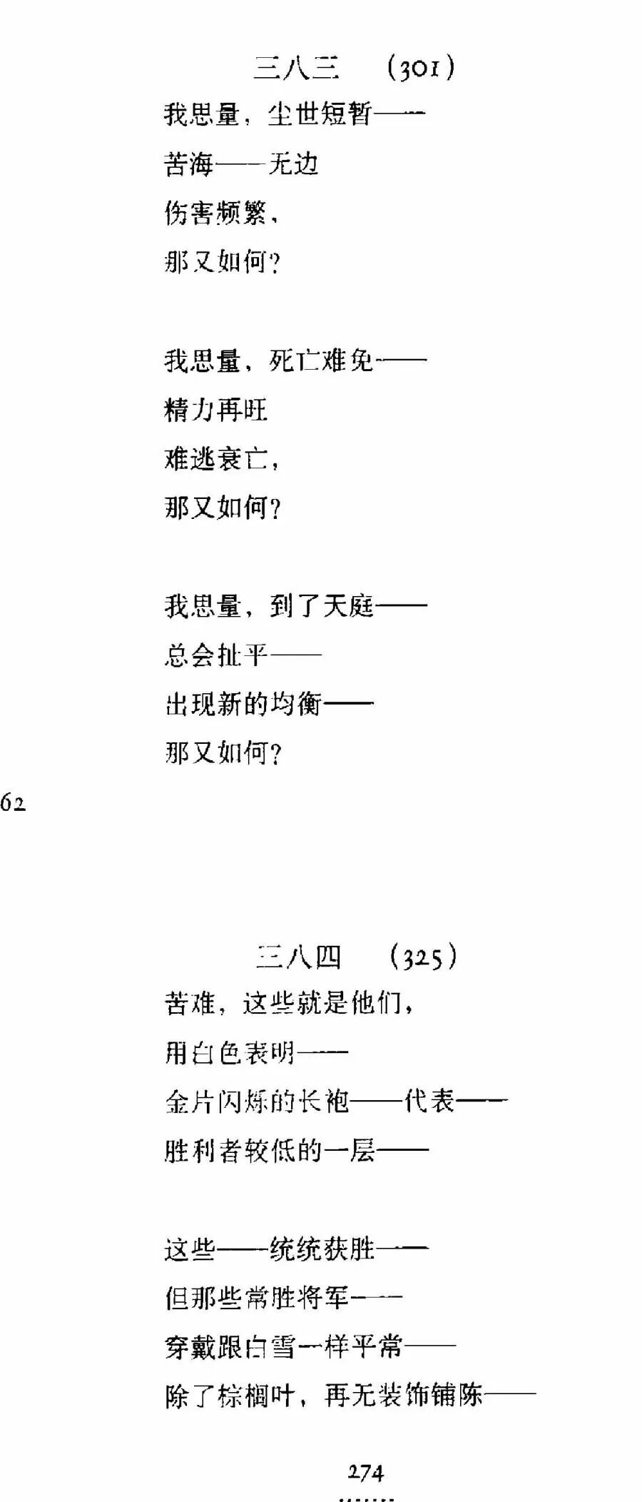 艾米莉·伊丽莎白·狄金森(英语:Emily Elizabeth Dickinson,又译艾弥莉‧狄瑾荪或埃米莉·狄更生,1830年12月10日-1886年5月15日),美国诗人。诗风凝炼,比喻尖新,常置格律以至语法于不顾。生前只发表过10首诗,默默无闻,死后近70年开始得到文学界的认真关注,被现代派诗人追认为先驱。与同时代的惠特曼,一同被奉为美国最伟大诗人,后世对她的诗艺、恋爱生活、性取向多有揣测。