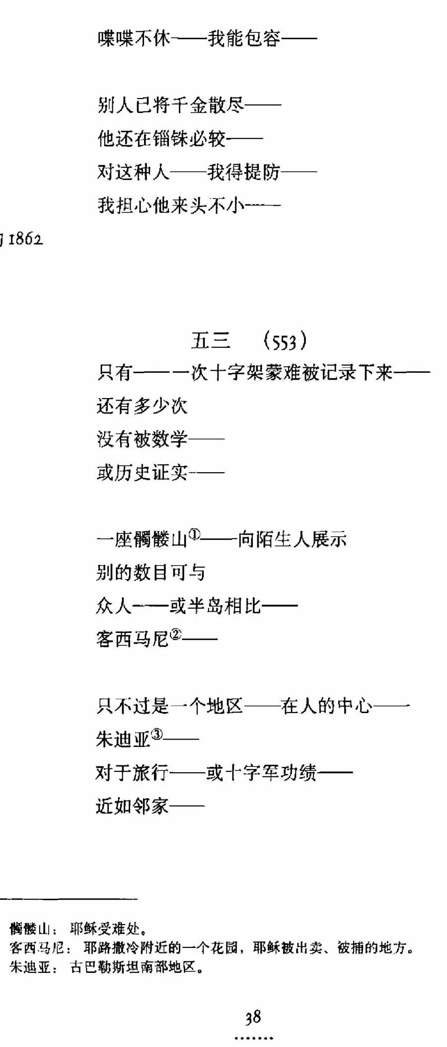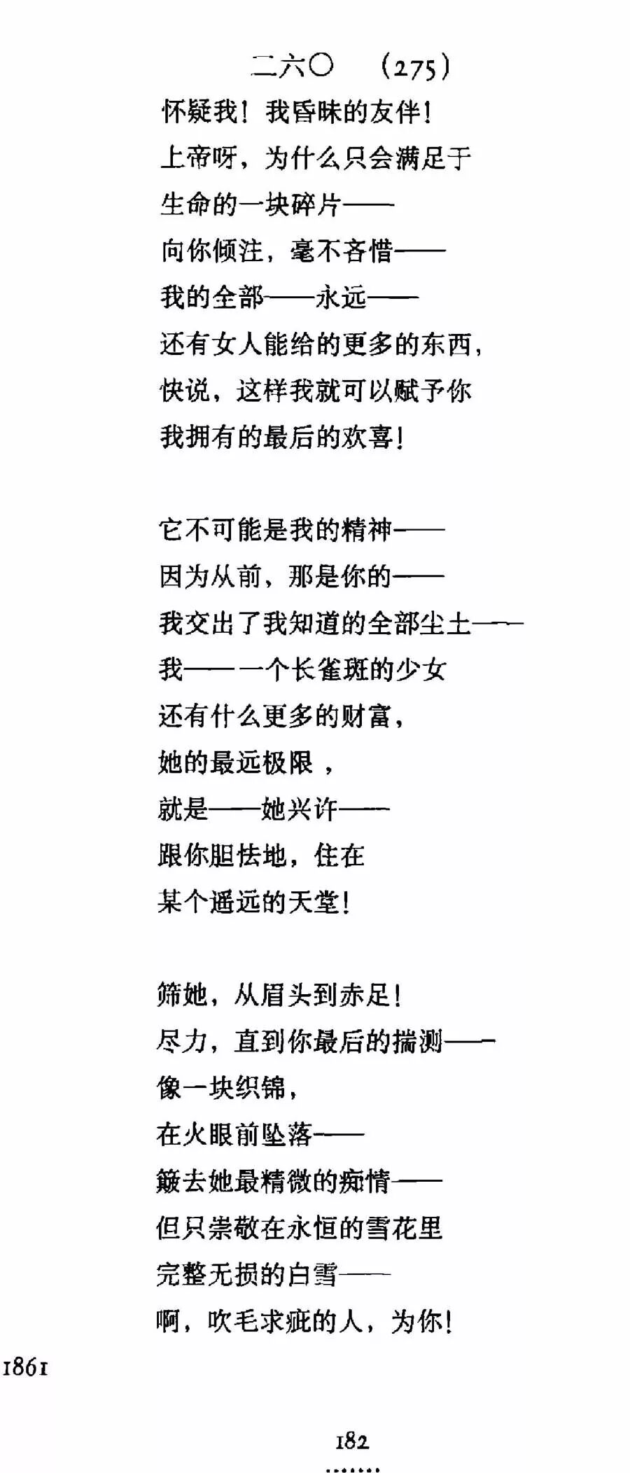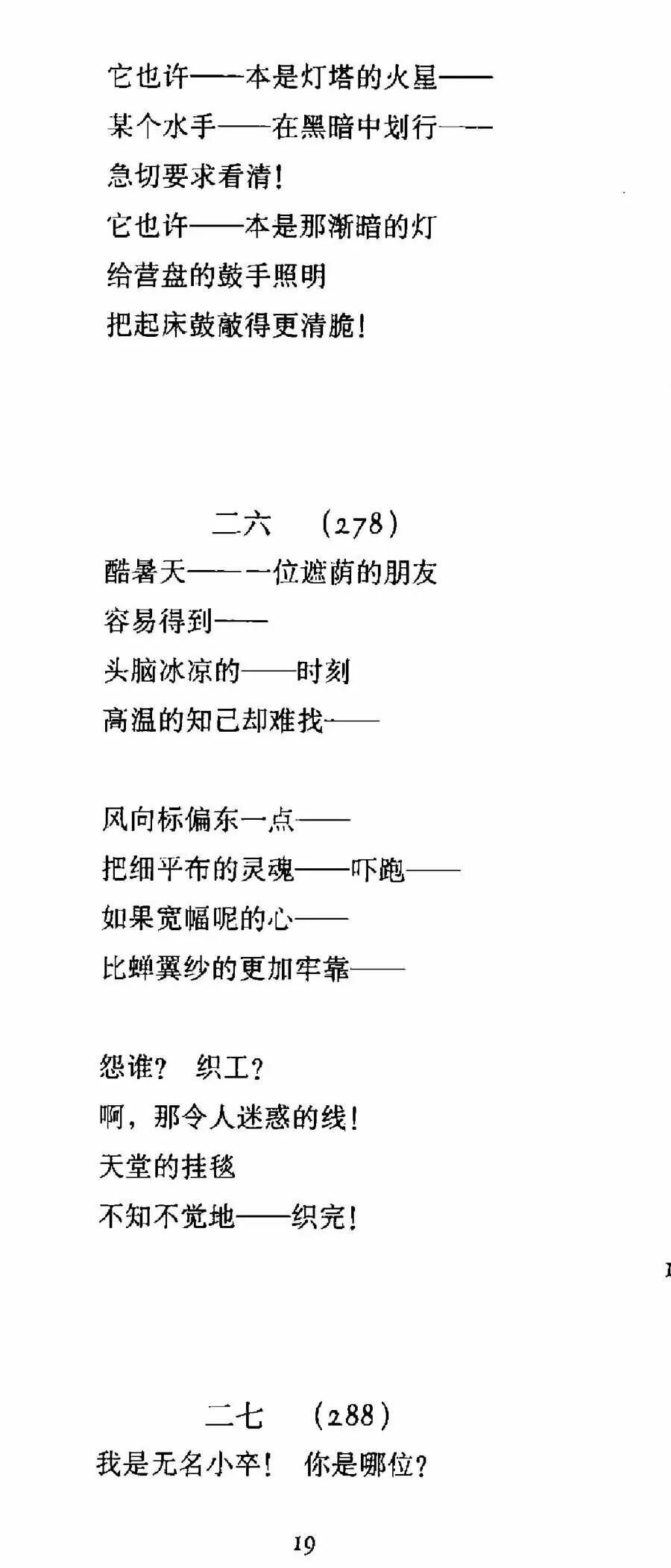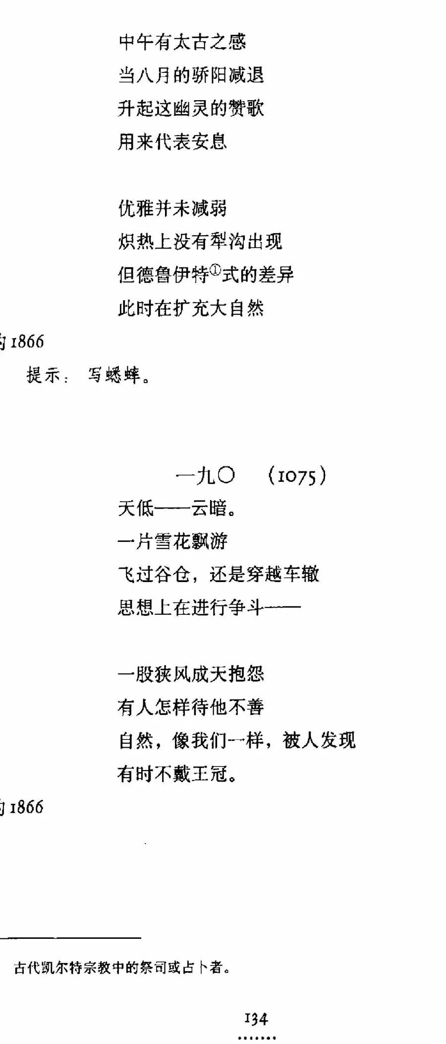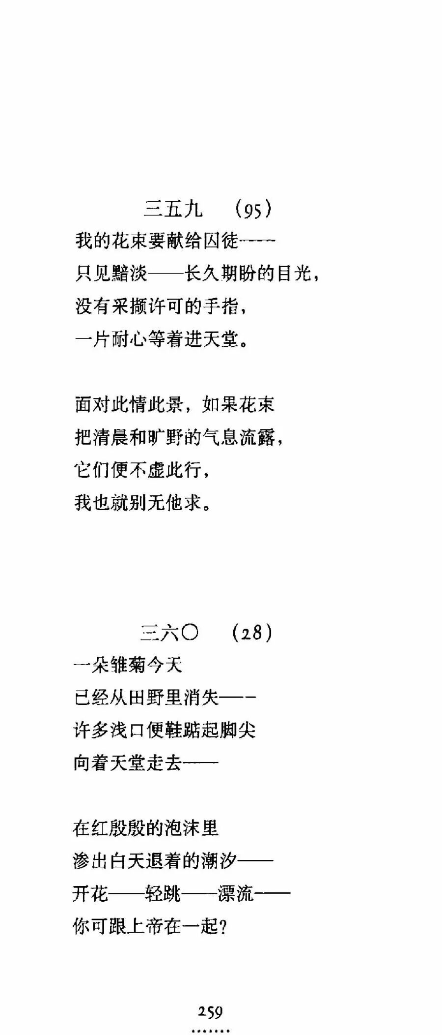 艾米莉·伊丽莎白·狄金森(英语:Emily Elizabeth Dickinson,又译艾弥莉‧狄瑾荪或埃米莉·狄更生,1830年12月10日-1886年5月15日),美国诗人。诗风凝炼,比喻尖新,常置格律以至语法于不顾。生前只发表过10首诗,默默无闻,死后近70年开始得到文学界的认真关注,被现代派诗人追认为先驱。与同时代的惠特曼,一同被奉为美国最伟大诗人,后世对她的诗艺、恋爱生活、性取向多有揣测。