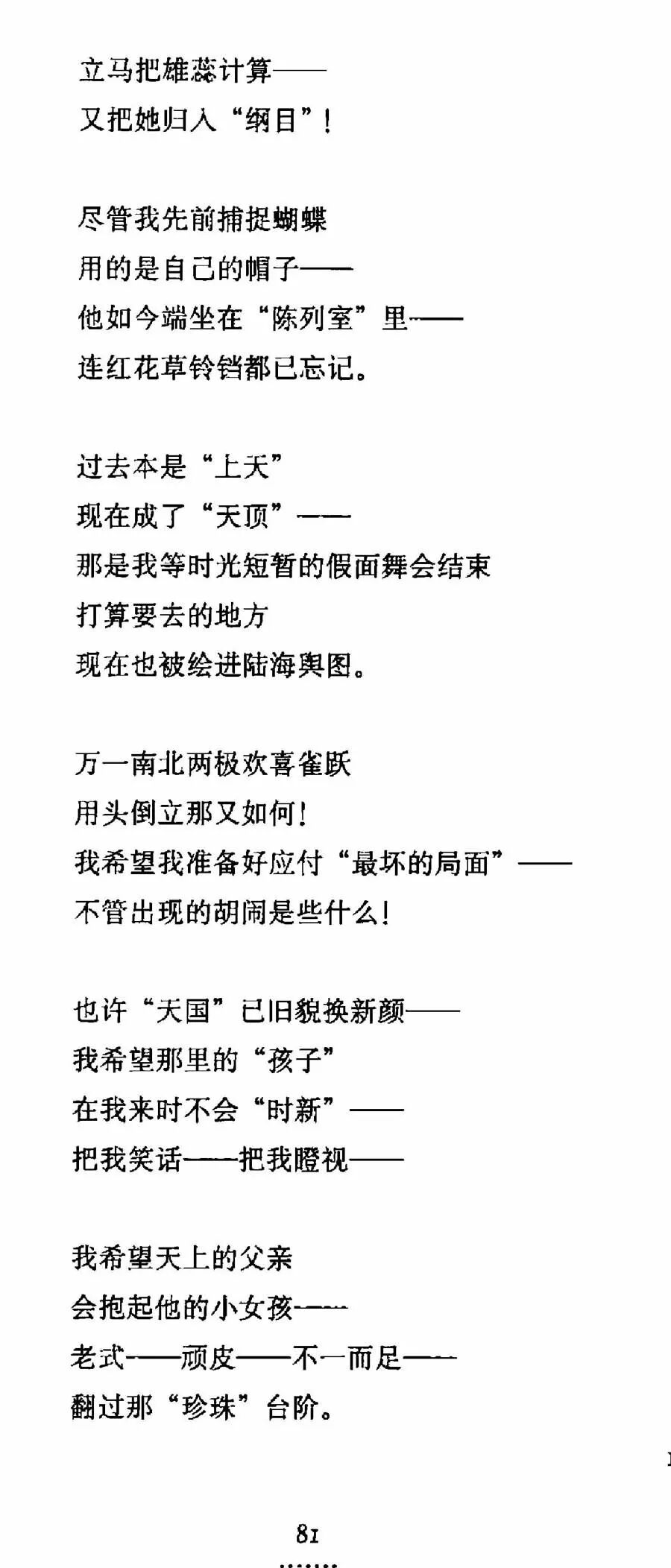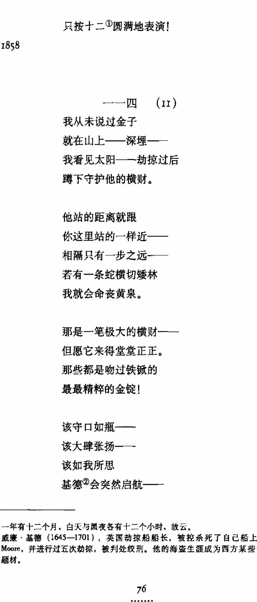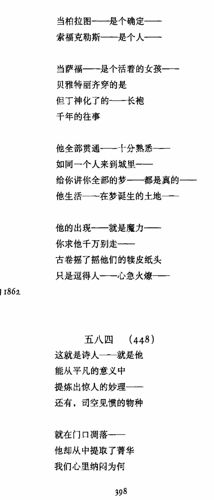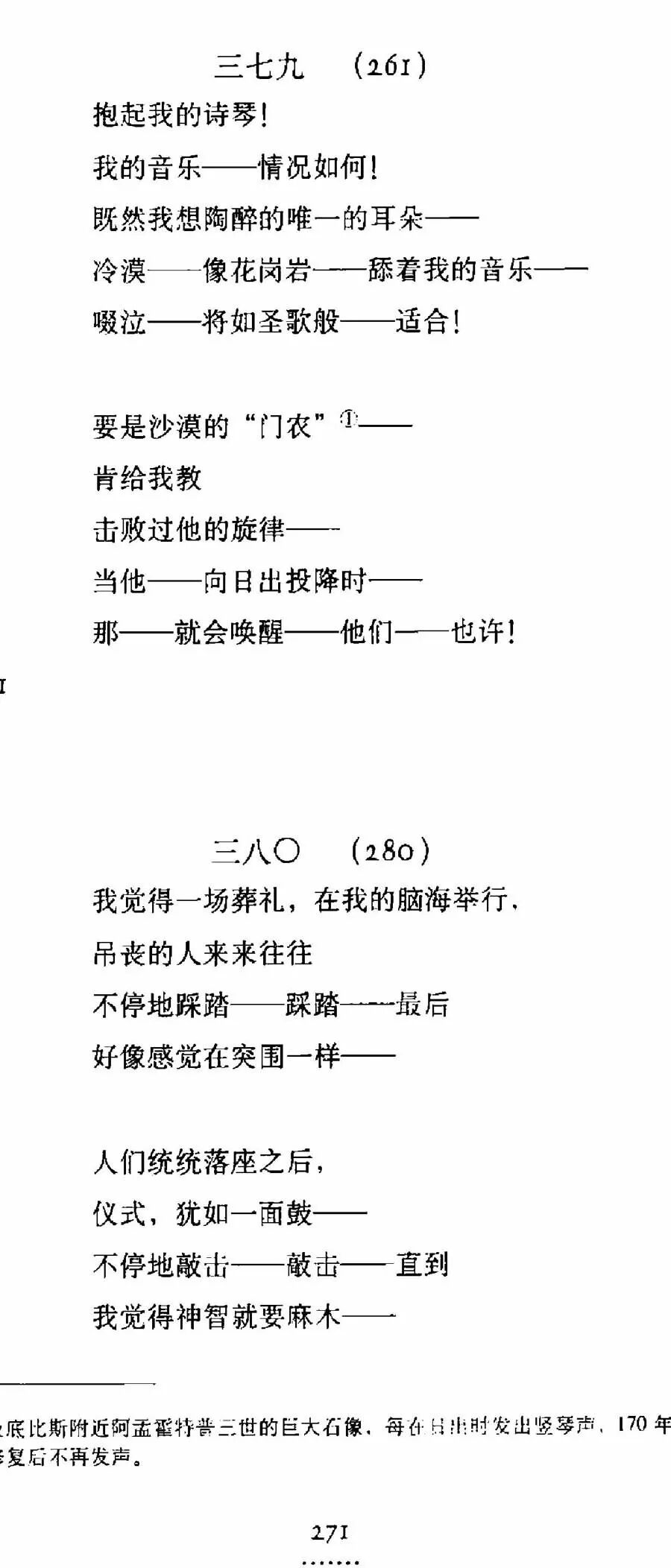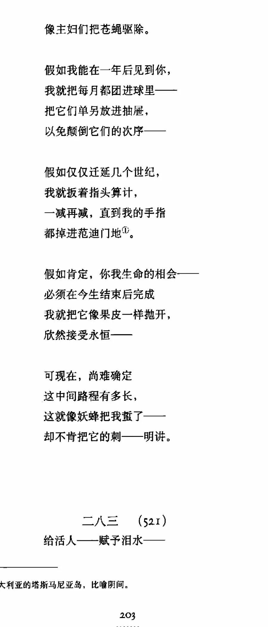 艾米莉·伊丽莎白·狄金森(英语:Emily Elizabeth Dickinson,又译艾弥莉‧狄瑾荪或埃米莉·狄更生,1830年12月10日-1886年5月15日),美国诗人。诗风凝炼,比喻尖新,常置格律以至语法于不顾。生前只发表过10首诗,默默无闻,死后近70年开始得到文学界的认真关注,被现代派诗人追认为先驱。与同时代的惠特曼,一同被奉为美国最伟大诗人,后世对她的诗艺、恋爱生活、性取向多有揣测。