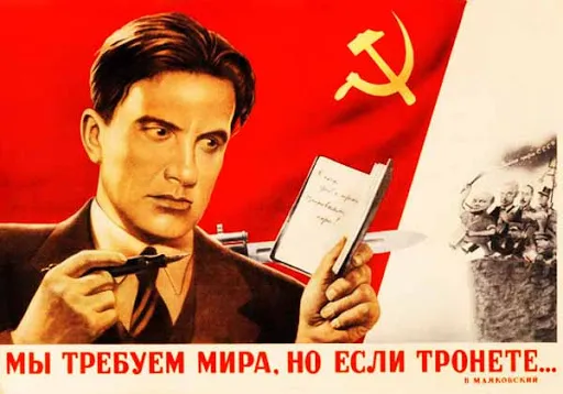 我们在今天当然可以轻松地说,被政客摒弃恰恰是好作品的反面证明,可是想想革命后的那些恐怖年代,想想1921年被杀害的诗人古米廖夫,1922年被送上哲学船驱逐到国外的那一百六十多名哲学家、作家、历史学家、经济学家、法学家和数学家,革命的阴影和反作用力是巨大的。一方面是对革命抱有纯粹的激情,一方面可能也有某种自保的心理,马雅可夫斯基在整个二十年代勤奋工作,像一个游吟诗人一样到处演讲,朗诵,鼓吹革命,并以自己真诚的诗篇歌颂革命、甚至歌颂几乎判决自己作品死刑的革命领袖。马雅可夫斯基试图紧跟革命的洪流,不被革命的巨轮抛弃。既然立体主义在新政权下已经不受待见,那么就改弦更张,变身为立体共产主义,变成列夫,变成莱夫, 不同的旗号下自然有不同的纲领,但总的来说万变不离其宗,其核心观念还是未来主义时期确立的那些东西(这些不变的东西,这些对形式一以贯之地坚持,其实正是马雅可夫斯基作品质量的保证,但却不利于挣得当局的信任),后来自然也有新成员加入,但是其才能都远远不能和第一代立体主义者相匹敌,这些新成员无力给新的旗号增添任何有益的东西,无论是提升诗艺本身还是仅仅就争取到当局的信任这功利性的层面。这些不停改换的旗号,在我看来主要还是为了抢得苏维埃政权治下文学艺术的话语权,那意味着什么——出版的顺畅,扩大的名声,优厚的利益?或者至少是生存。但所有的努力都失败了,所有的期望最终都化为泡影。