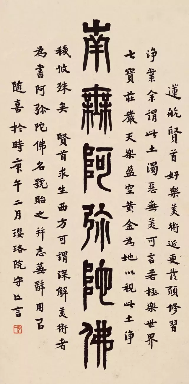 大字楷书,线条粗重方硬,结体茂密开张,北碑之风跃然纸上。