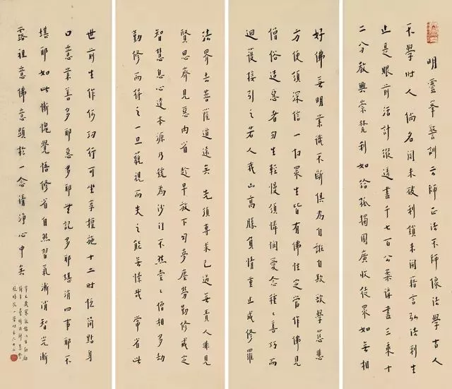 李叔同出家后,就变成了弘一,一个虔诚的苦行僧,一位律宗的大拿!他的书法,也开始一步步磨掉了锋芒,洗净了铅华。
