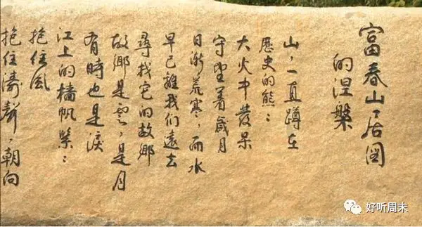 《富春山居图的涅槃》由洛夫亲笔书写并刻成诗碑,立在杭州富阳黄公望隐居地。