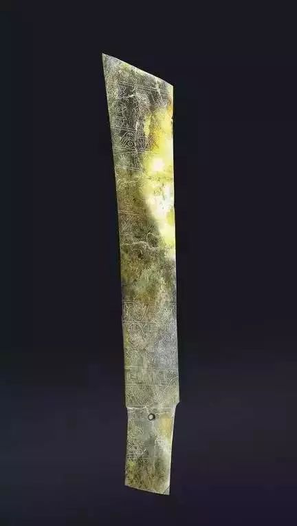 属商代前期,1974年黄陂盘龙城李家嘴三号墓出土。玉质仪仗器,长94厘米、宽14厘米、厚仅1厘米,堪称“玉戈之王”。现藏湖北省博物馆。