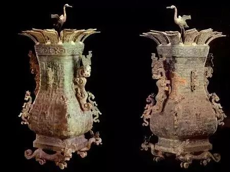 属春秋中期,1978年河南淅川下寺出土。这是我国迄今发现用失蜡法铸造的时代最早的铜器,其工艺精湛复杂,令人叹为观止。现藏河南博物院。