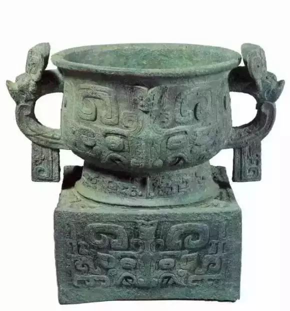 属西周时期。整个尊体以雷纹为底,高浮雕处则为卷角饕餮纹,圈足处也饰有饕餮纹,工艺精美、造型雄奇。现藏陕西宝鸡市博物馆。