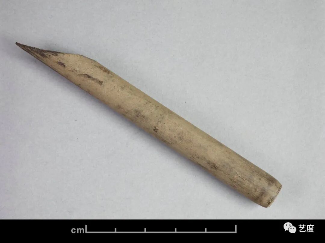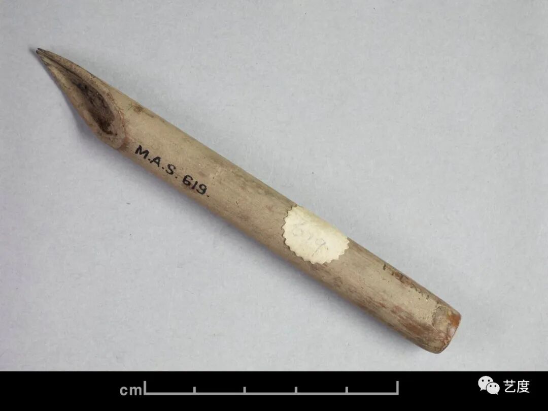 米兰遗址还有一些有趣的发现,比如这只一千多年前的硬笔。这种笔以木质材料精工削磨,有锋利的笔尖和笔舌,更令人惊奇的是,笔舌中间有一道缝隙,呈双瓣合尖状,跟现代的钢笔构造几乎一致。这一发现证明了我国早期使用硬笔的历史。