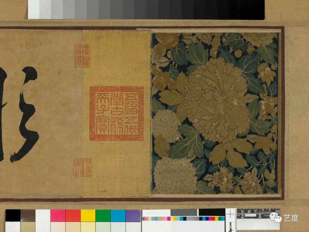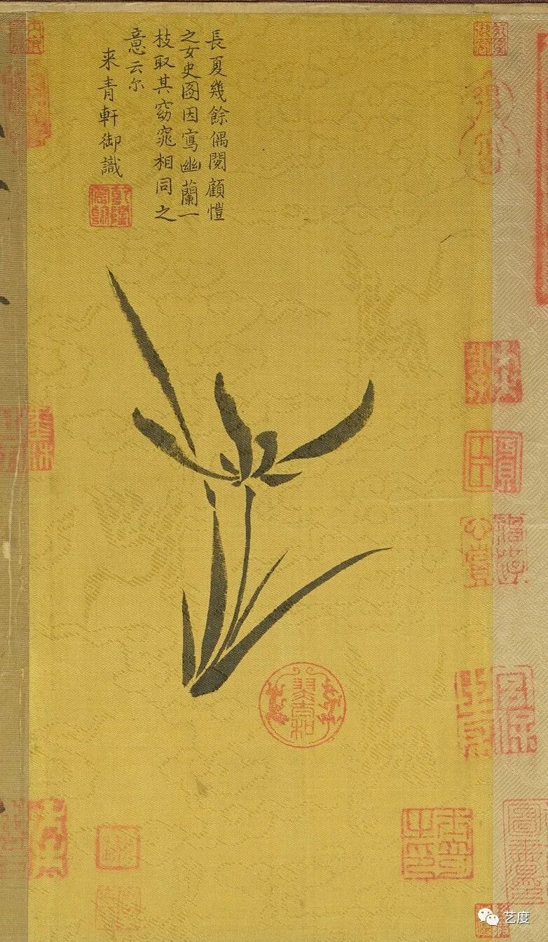 1746年重新装裱的时候,乾隆皇帝加入一些新部分,比如他亲手画的兰花。