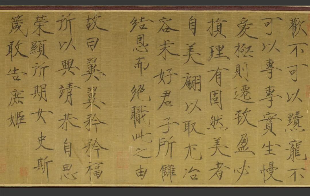 《女史箴图》卷后有一段瘦金体题跋,气息和宋徽宗比起来偏弱,一般认为是金章宗完颜璟所作。
