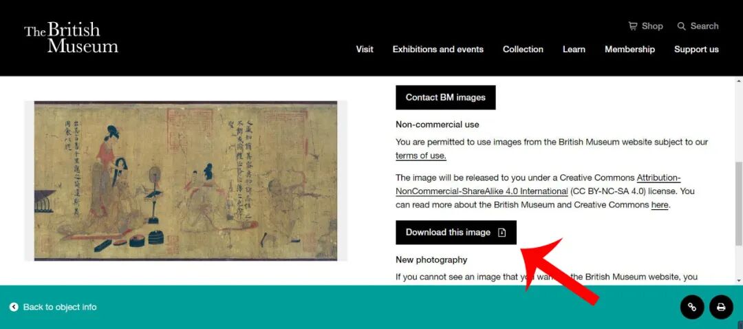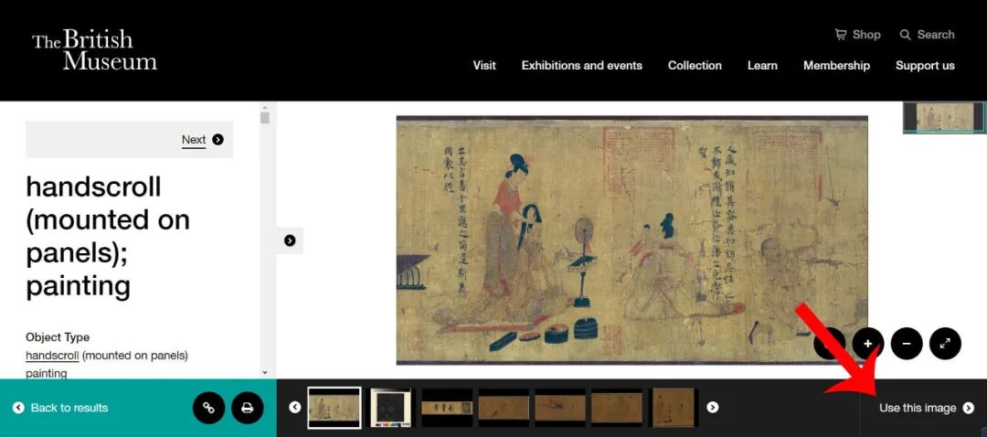 最后提一下怎么下载,以《女史箴图》为例,点击红色箭头指向的“Use this image”(使用这张图片)