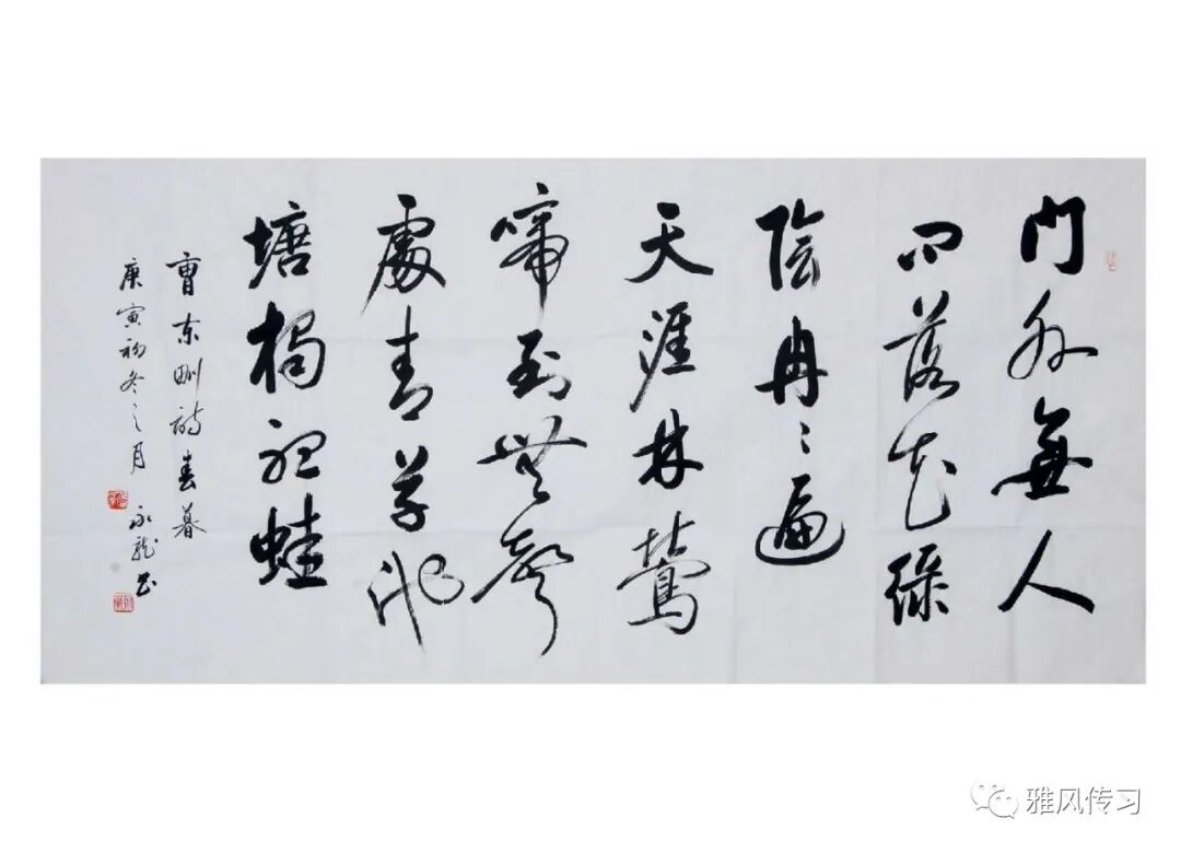 张同印的书法,其行书也是出于欧阳中石的近亲繁殖,他对“欧阳体”书法模仿的敏感度要低于秦永龙,他笔下的“欧阳体”行书其俗在骨,直是把欧阳中石的行书彻底庸俗化了。张同印也写隶书,他的隶书技法讲座视频一样在网间随处可见,只是他对汉碑、汉简等的基础技法都没有最基本的掌握和理解,评张的这些讲座视频是在谬种流传,误人子弟当称恰如其分。张同印无论写行书,抑或写隶书、篆书、楷书等,尽皆点画僵死,异常板滞,了无半点活脱脱的意味。可见,爱好书法和写好书法是两回事,写好书法,写到大好需要大才气,写到小好也需要小才气,我可以负责任地说,关于毛笔的艺术化书写,张同印没有半点才气,纯属无知无畏的笨伯一个!学书的才气主要体现在观察力和表现力两个方面,如老一代书法大家朱复戡曾言“字能写得好的人,多是’眼根’发达的人”。“眼根”发达者,不外乎属于观察力强的人,当一个学书者的观察力能保证强盛,其人对古人法帖的细处自可体察入微。而稍晚于朱复戡的书画大家陆俨少又认为,欲想把字写好,全在指腕之间天生一副好“肌肉”,好“肌肉”者,无非是指表现力特强的人,下笔得气,如有神助,将各种点画赋予生命的意味。朱、陆两位前辈所主的学书妙旨加以结合,就是书法实践才气的两处关键质素。可惜的是,此两项学书的关键质素,都没有附着到张同印的身体里,他的字就算写到垂垂老矣,也一定原地踏步,与往昔一般的俗不可耐,此全怪“老天爷不赏饭”故也,只是这一大窘处张同印自己能解悟到一二吗?我常常想,当夜深人静时,无知无畏如张同印者,会扪心自问吗?会稍加自省吗?是否要省察一下,自己的学术能力能不能配得上“书法博导”这个崇高的学术荣誉?并由此而渐渐生出,哪怕一丝丝儿的惭愧之意?!