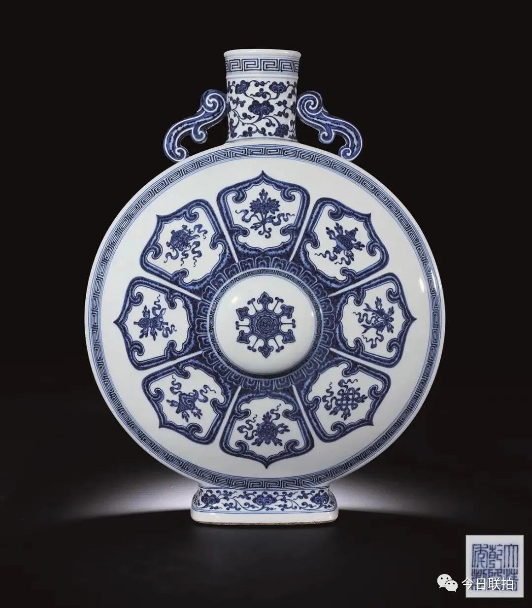 瞩目拍品青花喜鹊登梅抱月瓶,出自十面灵璧山居旧藏。该瓶以永窑为范,为雍正御窑摹古永乐青花之卓越代表。