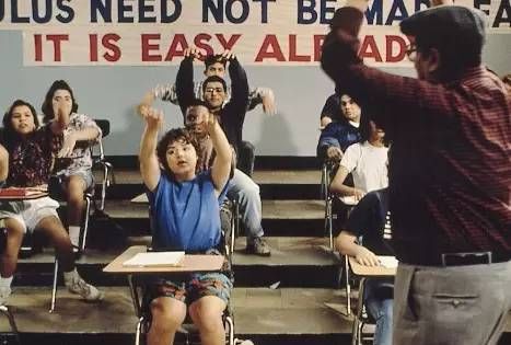Garfield高中在南加州当地排名倒数第1,管理极其混乱,95%的学生来自拉美地区的贫困家庭,家长只希望孩子尽早打工赚钱,而讲台下的学生们,不是顶着鸡窝头的不良少女,就是混社会的校园扛把子。