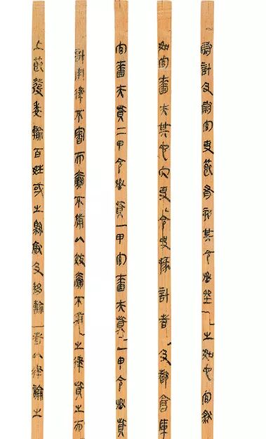春秋战国时期,由于诸侯割据,书体也出现了蝌蚪文、鸟书等颜色不一样的烟火。书写载体更加多样,出现了竹木简牍、帛书、石刻等,其中刻在石头上的石鼓文,是迄今所知传世的最早的石刻文字,为大篆书体,为秦朝的官方字体小篆的前身。