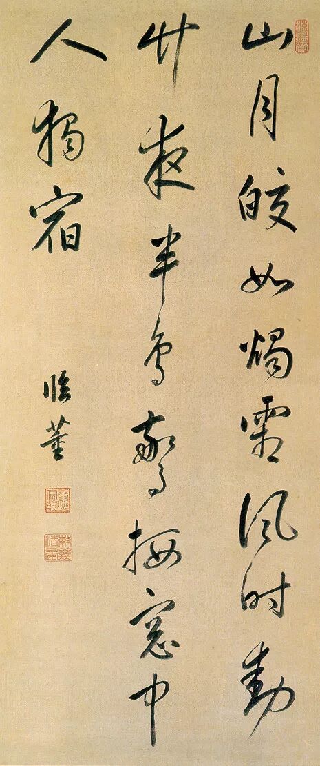 明晚期画家陈淳、徐渭的书风独具一格,个人风格突出。董其昌主张学习古人,但提倡师其意而不师其迹,建立了清雅疏秀的书风,对明末清初影响极大。