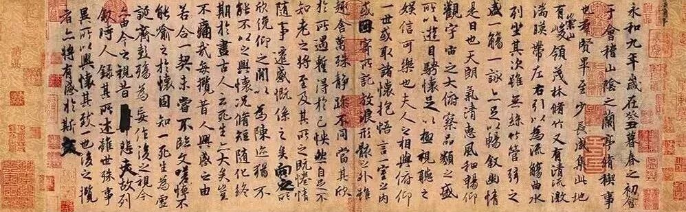 永和九年的三月三日,在会稽山阴之兰亭,会稽内史王羲之召集著名文士谢安、孙绰、王凝之、王徽之等四十一人,“群贤毕至,少长咸集” 曲水流觞,诗文吟咏,成诗数十首,王羲之把大家所作的诗集在一起,乘兴挥毫,写下文辞与书法并绝千古的《兰亭集序》,兰亭集会也因此成为雅集史上的传奇。