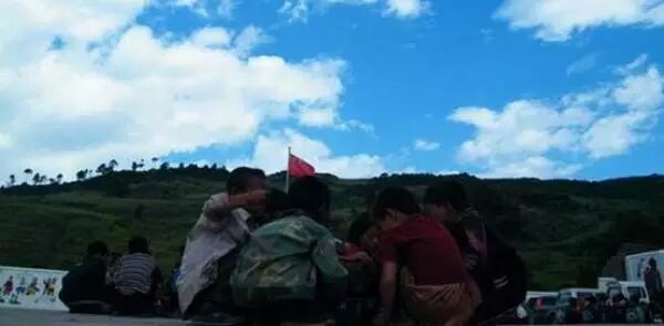 孩子们在集合放学,每个人的脸都是黑黑的,脏兮兮,身上的衣服都有破洞补丁。