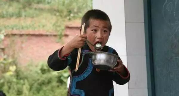 这是最让我心酸的一张图片。很多孩子担心米饭吃完了就没有了,都吃得很急,吃完了赶紧一路小跑去加饭。看着孩子皱着的眉头,真不知道该如何去抚平他的皱纹,驱走他内心的忧伤。
