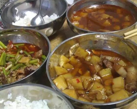 简易的饭菜,能吃饱已经很满足了,别谈营养。